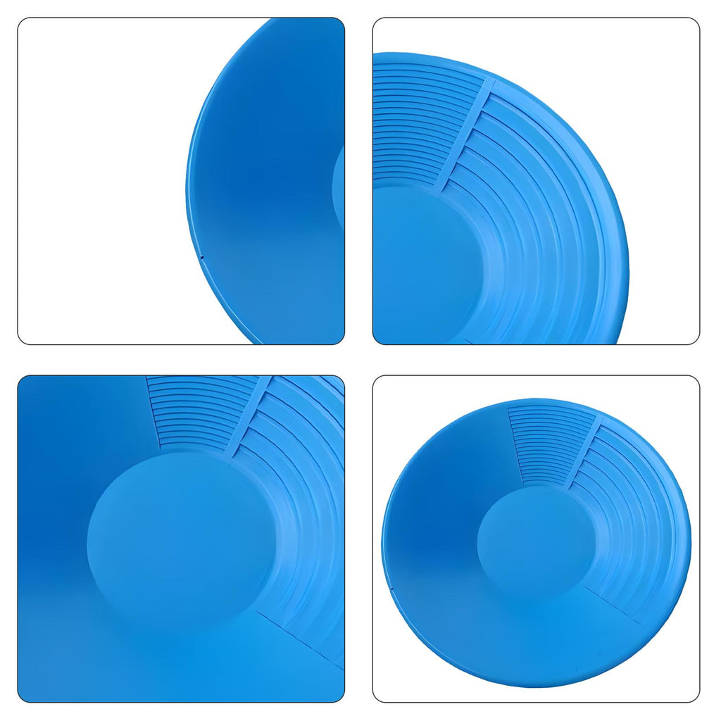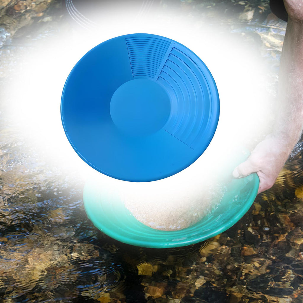 【Enhanced Gold Panning Efficiency】: Featuring a unique groove design, this gold panning pan increases contact with sand and gravel, allowing for accurate catches of gold particles. Its innovative structure ensures no tiny treasure is overlooked, significantly boosting your gold panning efficiency