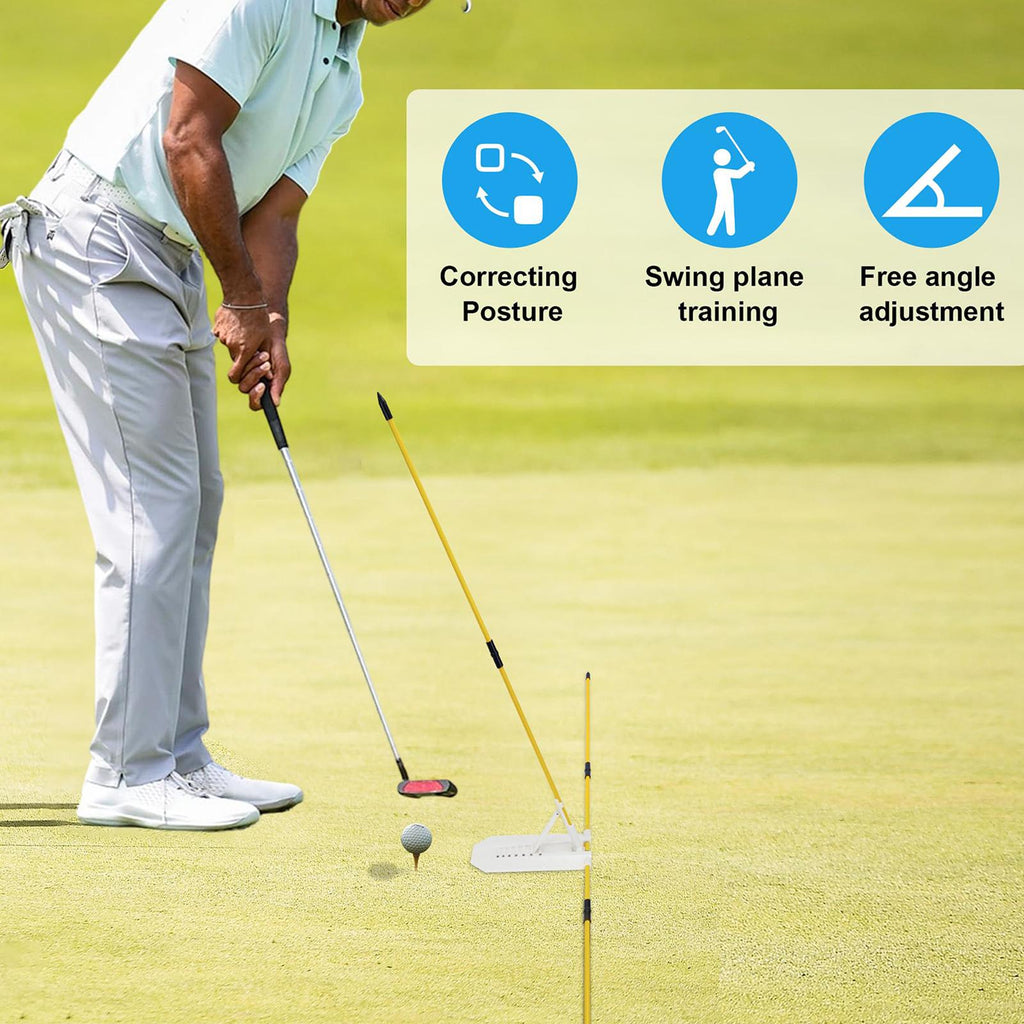 【Adjustable Design】: The Golf Swing Aid device features a telescopic angle adjustment, allowing players to adjust the setup to suit their swing and preferences
