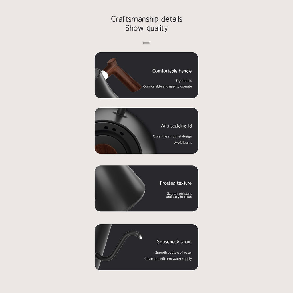 【Efficient Heating】: Rated at 1200W, this electric coffee kettle heats liquids quickly and efficiently.