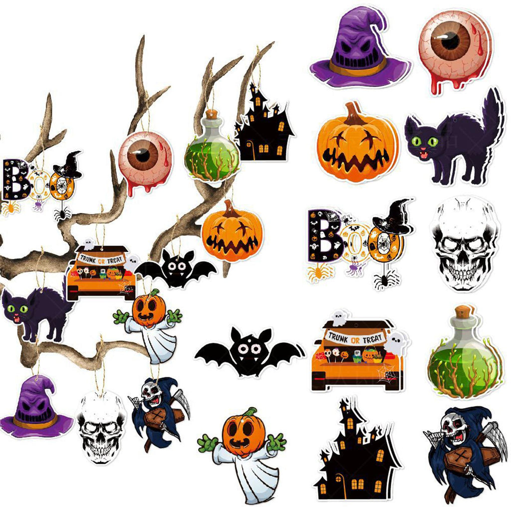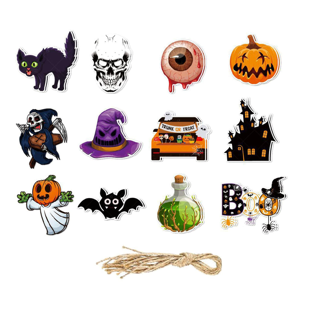 - 【EASY TO HANG】The Halloween banner pieces are pre holed, with string, easy to DIY, hang the Halloween Theme banner on the wall, backdrop, window, or tree; Easy to fold and store.