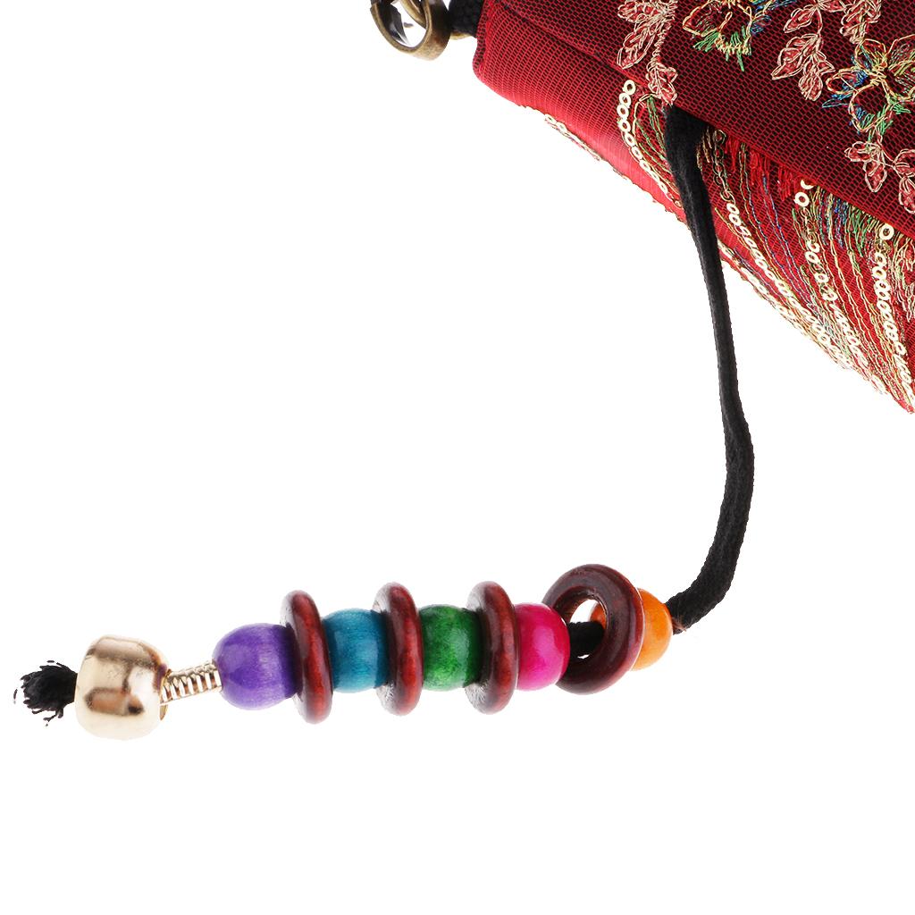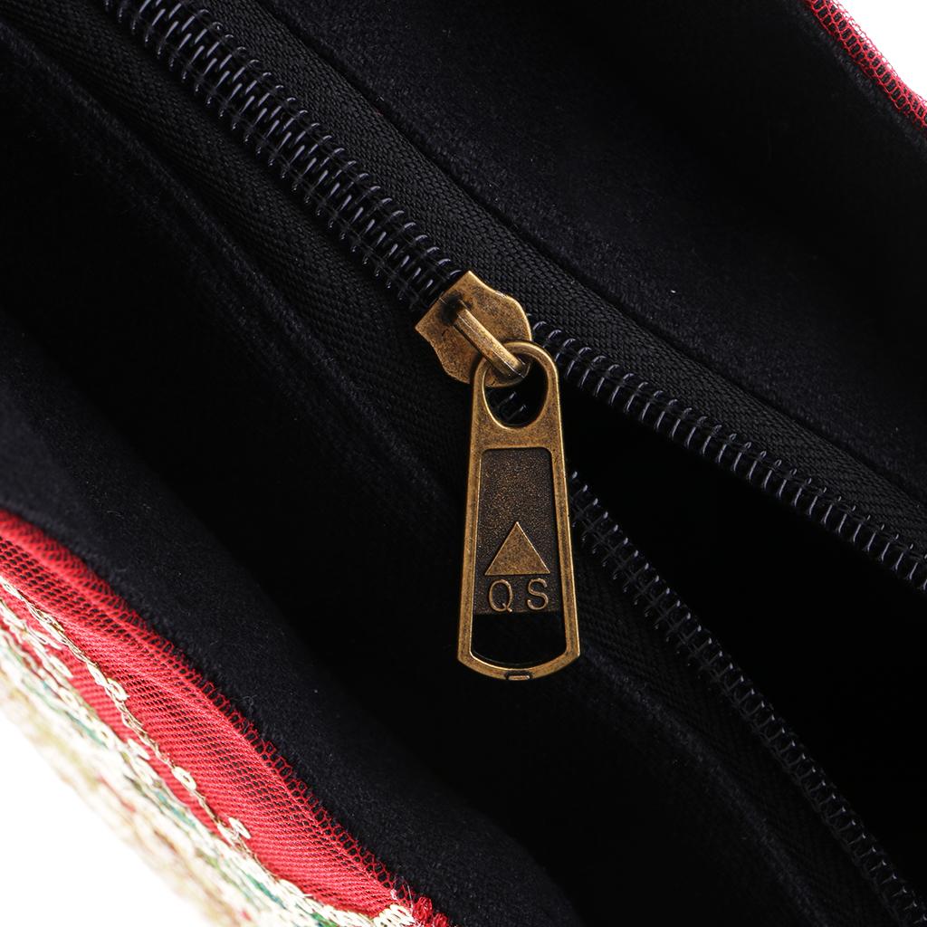 Two wooden beads on both flanks of the bag, also, both sides are fully exquisite peacock embroidered.