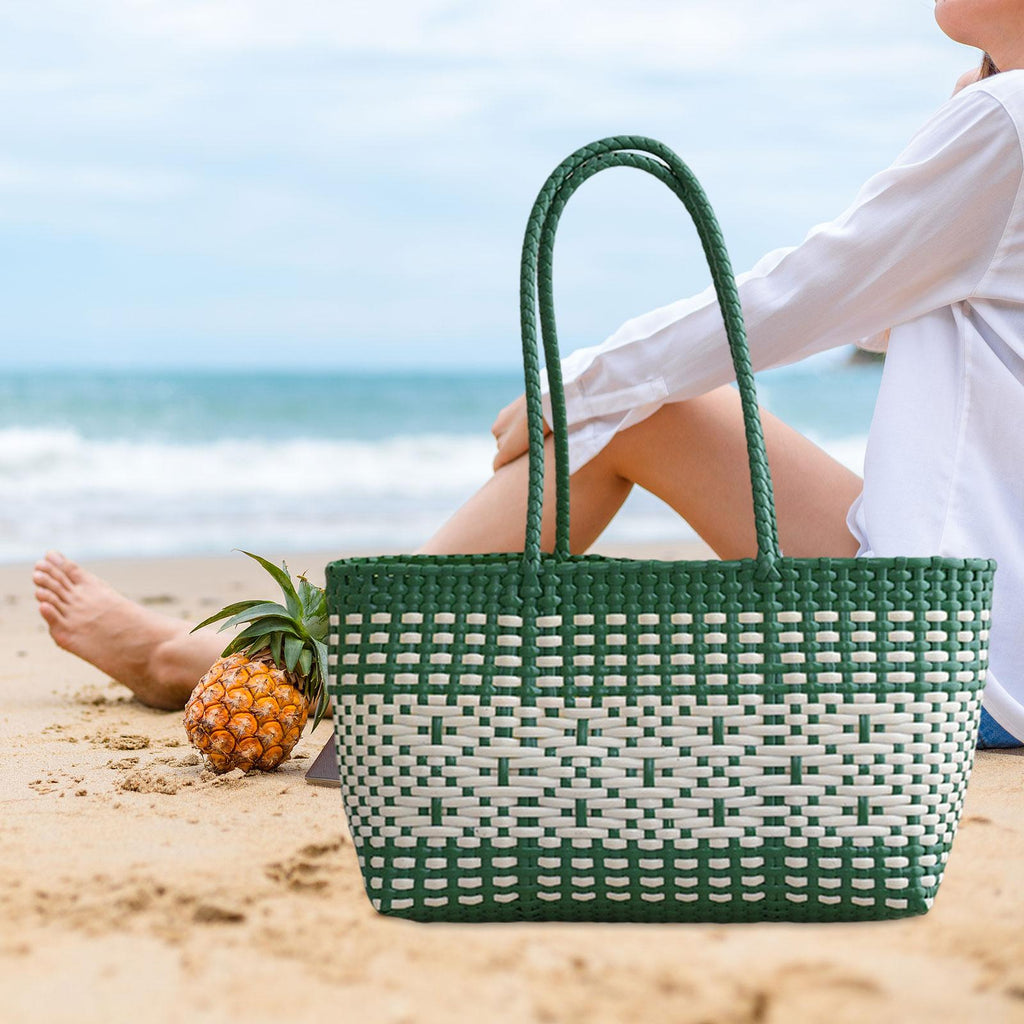 Maxbell Handwoven Shopping Basket Fashion Hand Woven Tote for Camping Outdoor Travel Green