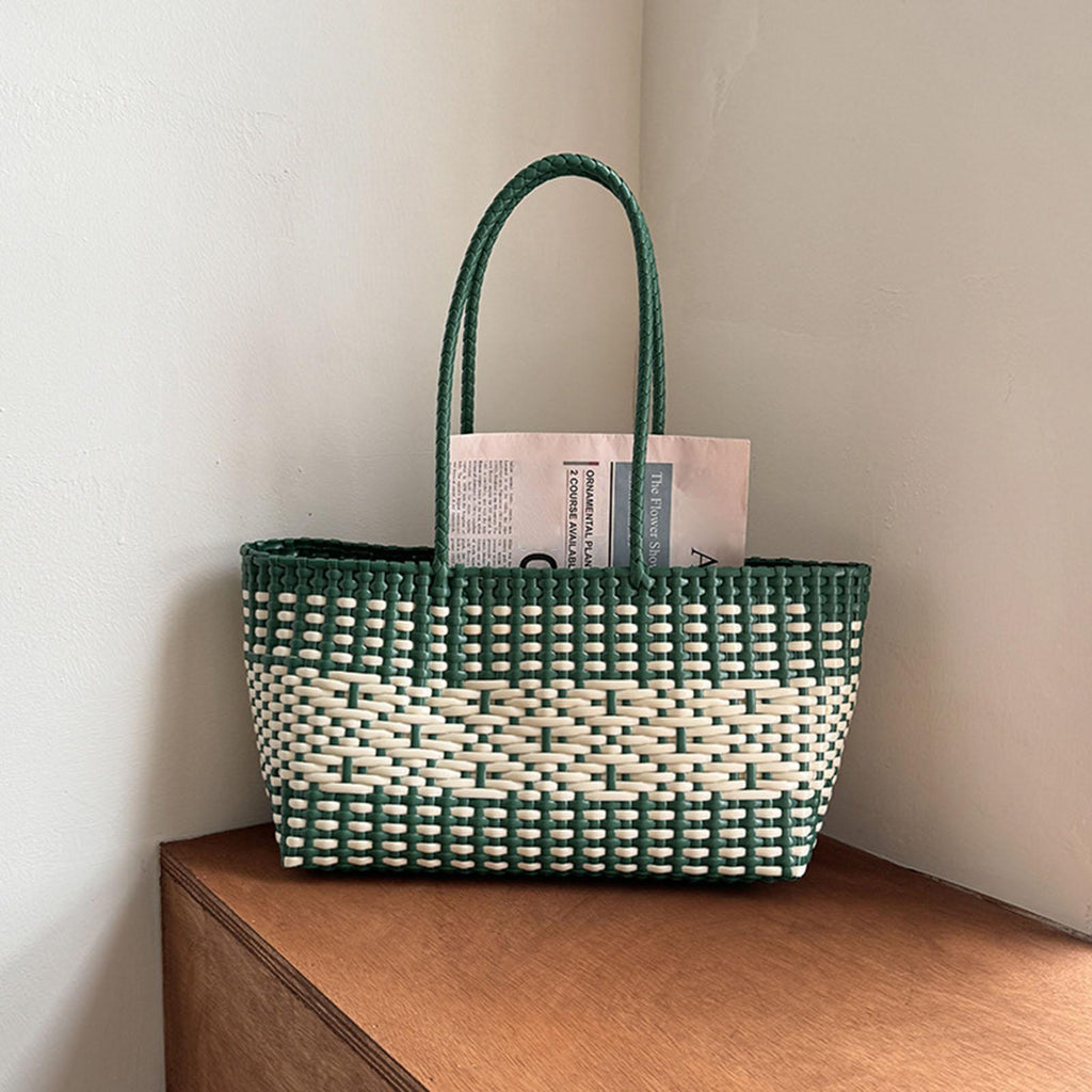【Quality material】: Crafted from quality pvc, this handwoven shopping basket is designed to be sturdy and wear resistant, ensuring it can withstand repeated use over time
