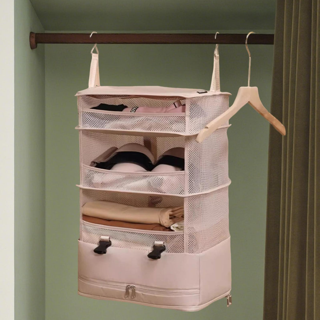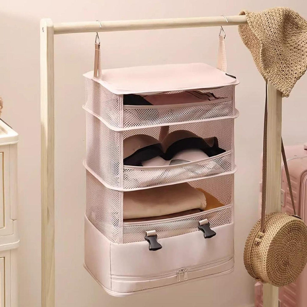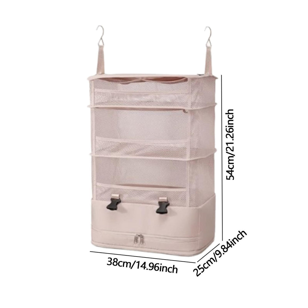 Maxbell Hanging Travel Shelves Bag Packing Cube Portable with Hook Luggage Organizer Khaki