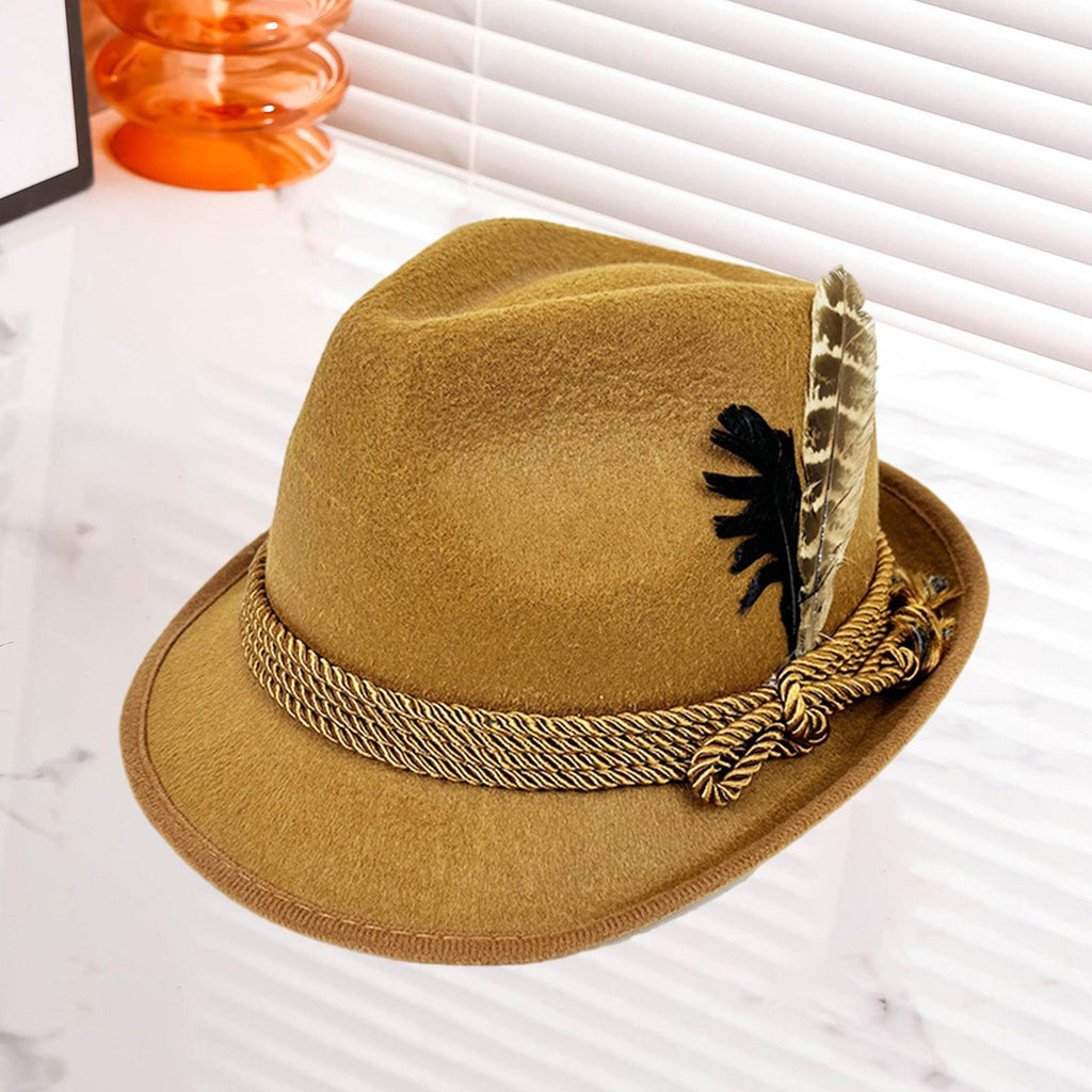 Maxbell Homburg Hat for Male Retro Design Fashion Hairdress for Work Travel Black Feathers