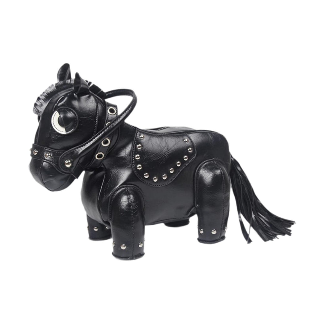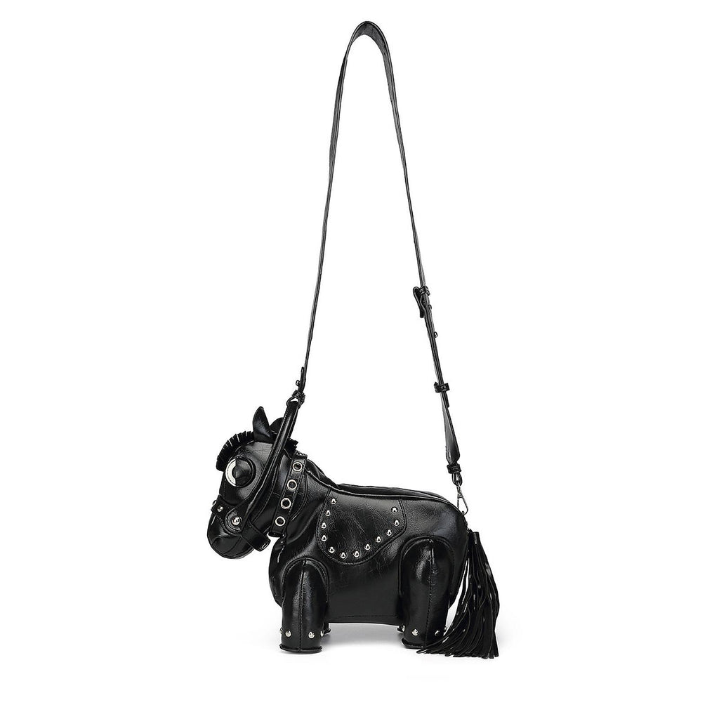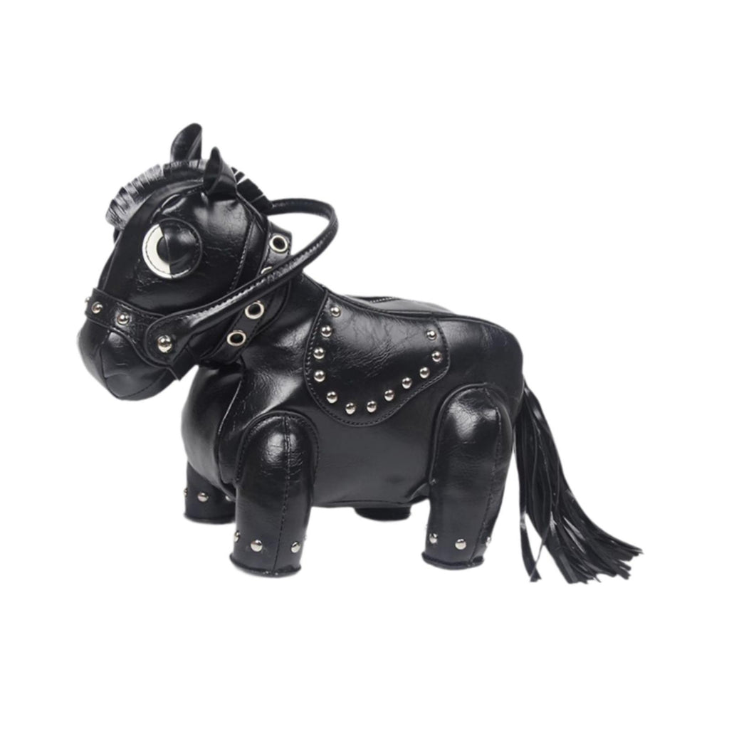 Maxbell Horse Shape Crossbody Bag PU Leather Casual Handbag for Work Shopping Travel Black