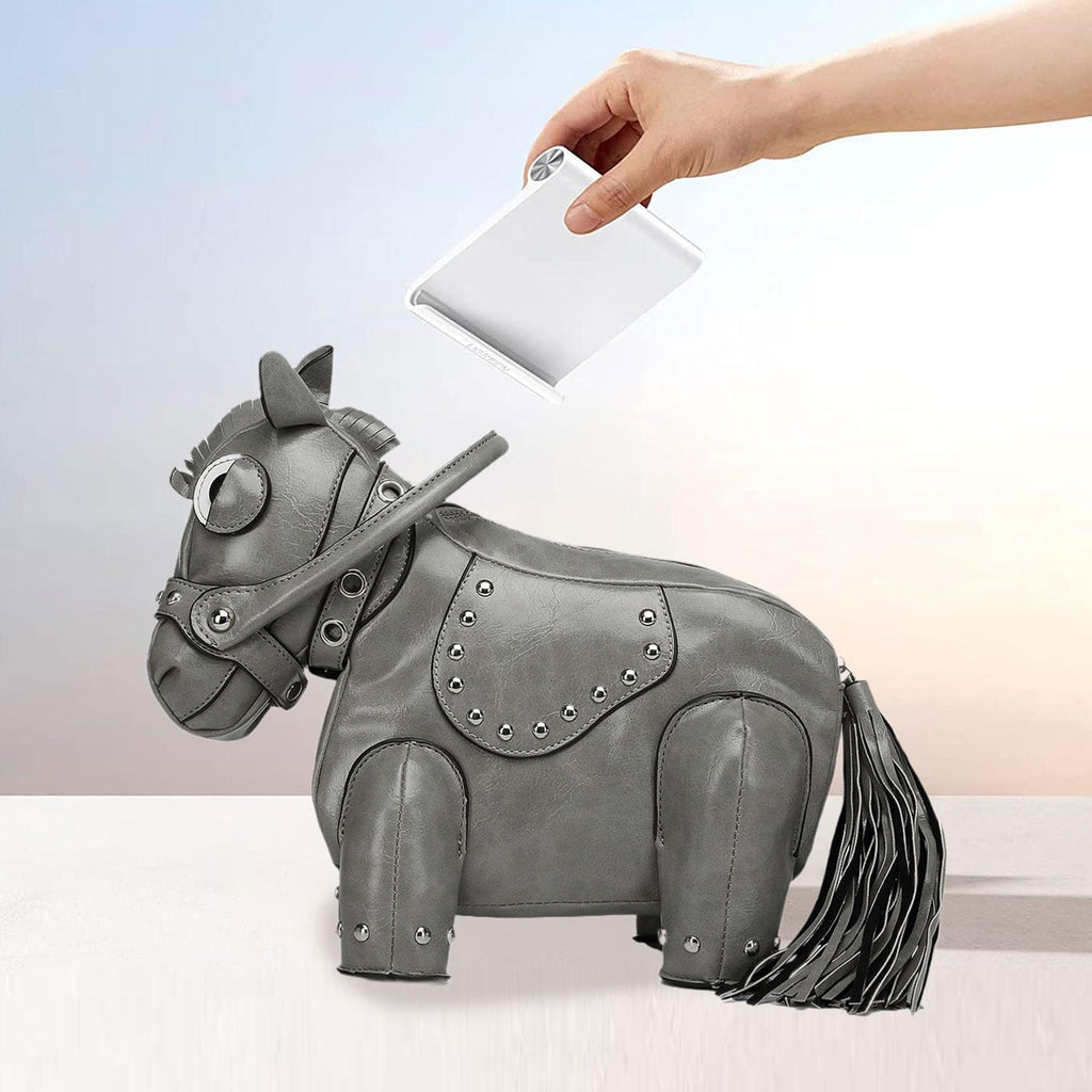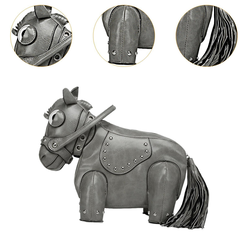 Maxbell Horse Shape Crossbody Bag PU Leather Casual Handbag for Work Shopping Travel Gray