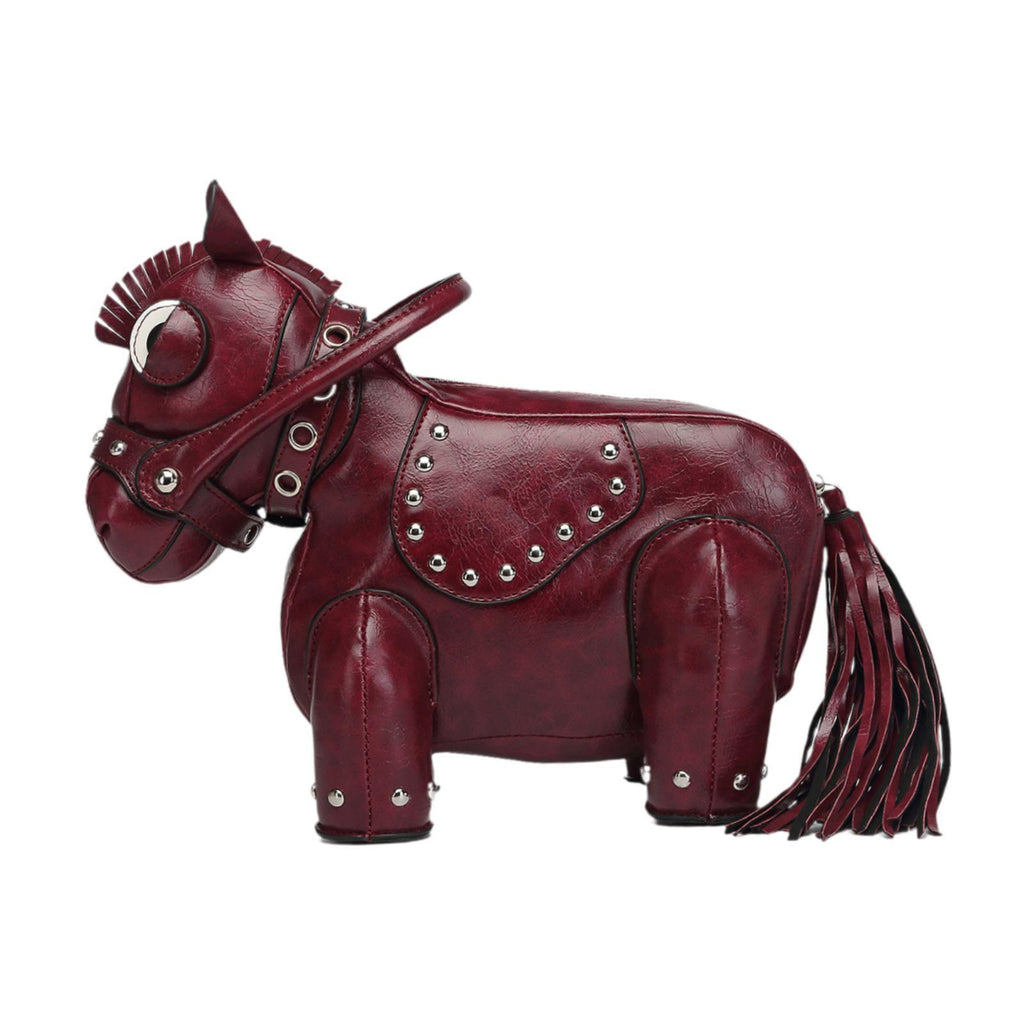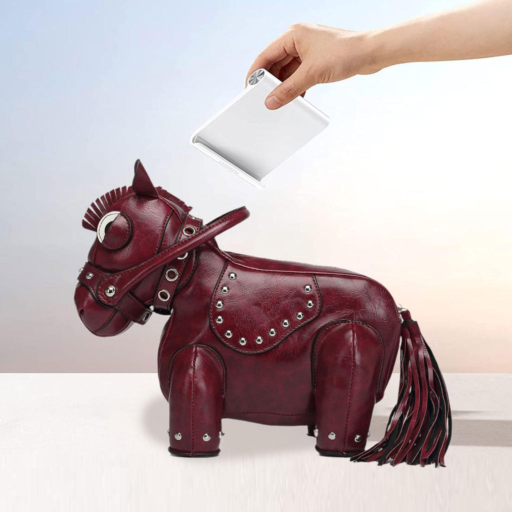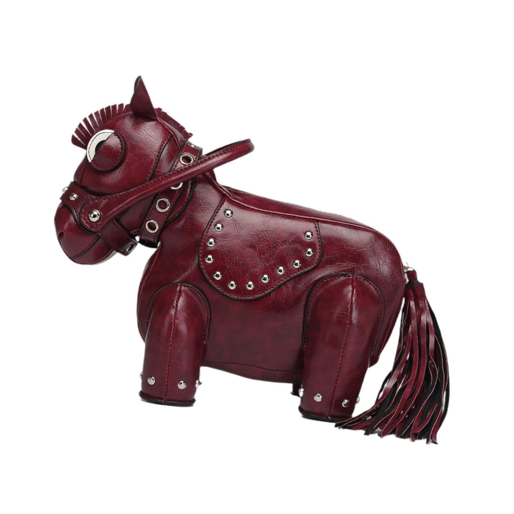 Maxbell Horse Shape Crossbody Bag PU Leather Casual Handbag for Work Shopping Travel Red