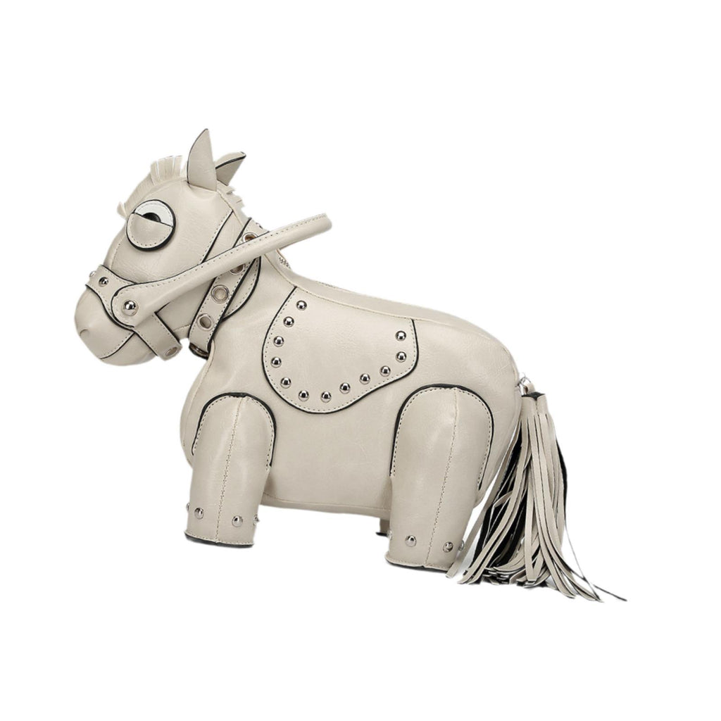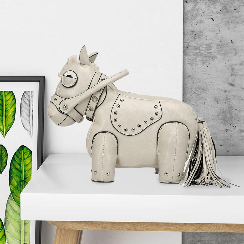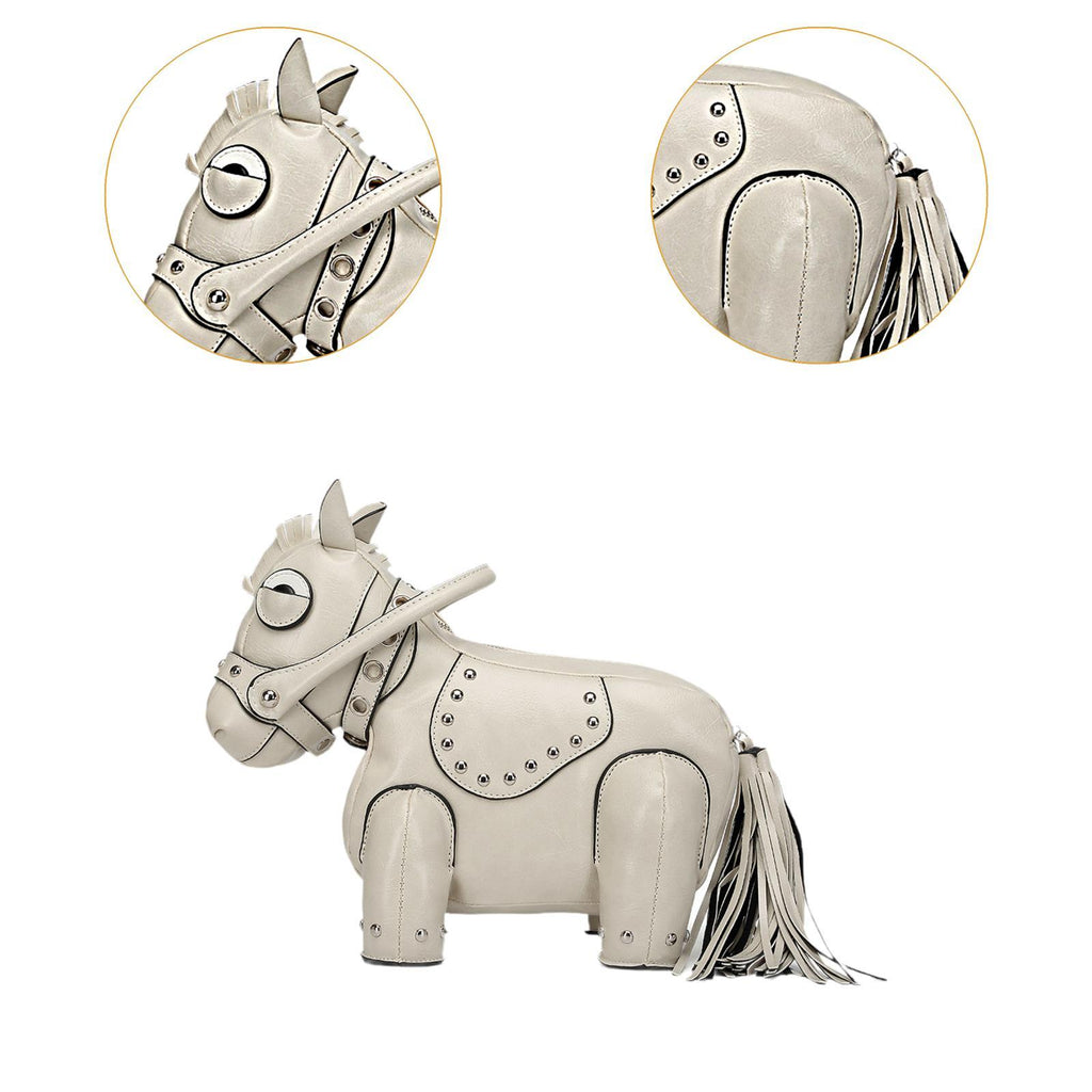 Maxbell Horse Shape Crossbody Bag PU Leather Casual Handbag for Work Shopping Travel White