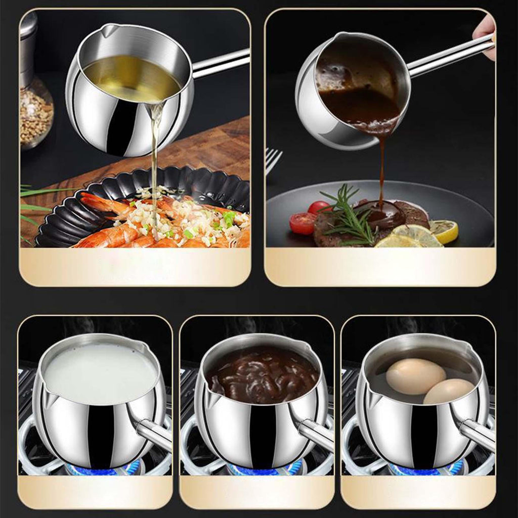 【Versatile】: This mini pot is ideal for various cooking tasks such as splashing oil, heating oil, making sauces, or even as a small milk pot for home use