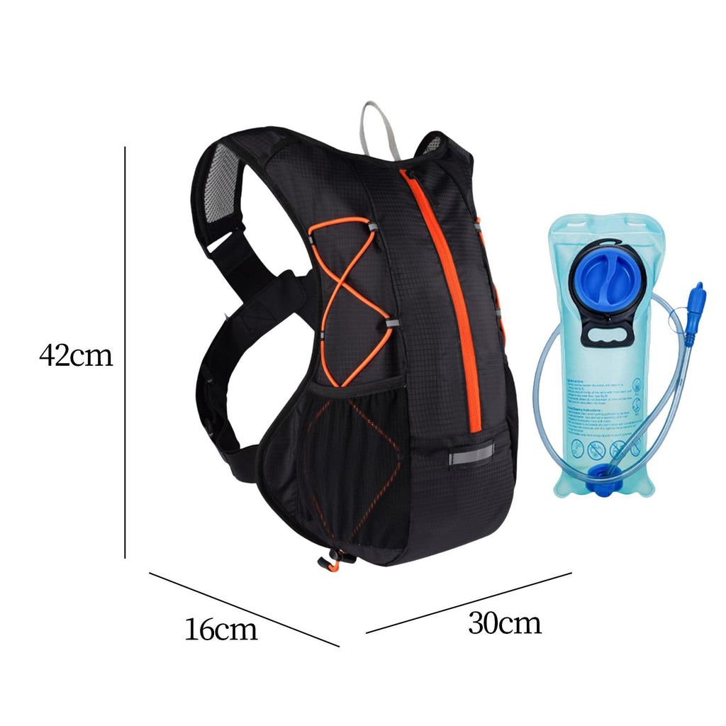 - 【Large Capacity】: The backpack has a large main compartment and multiple storage pockets for organized storage of various items. It has a 2L capacity for the water bladder.