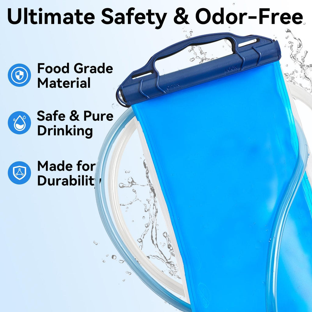 【Efficient Hydration System】: This 2L hydration pack features a plug and play system for quick and easy access to water, with a specially designed switch system that securely closes the valve during your trip. The detachable interface ensures convenience and reliability