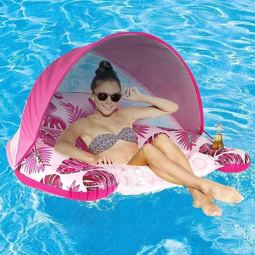Maxbell Inflatable Pool Float with Large Canopy Float Bed for Water Funs Party Travel pink
