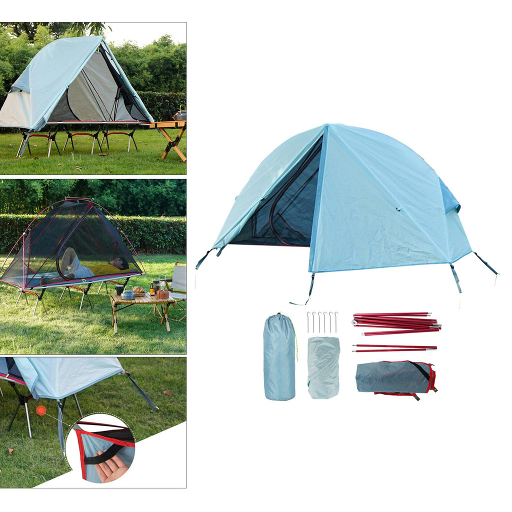 A single tent that can be quickly assembled and easily assembled by one person for outdoor travel, which is convenient. It can be used with a camp bed.