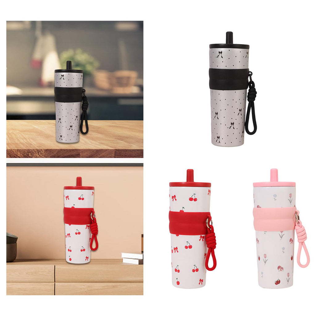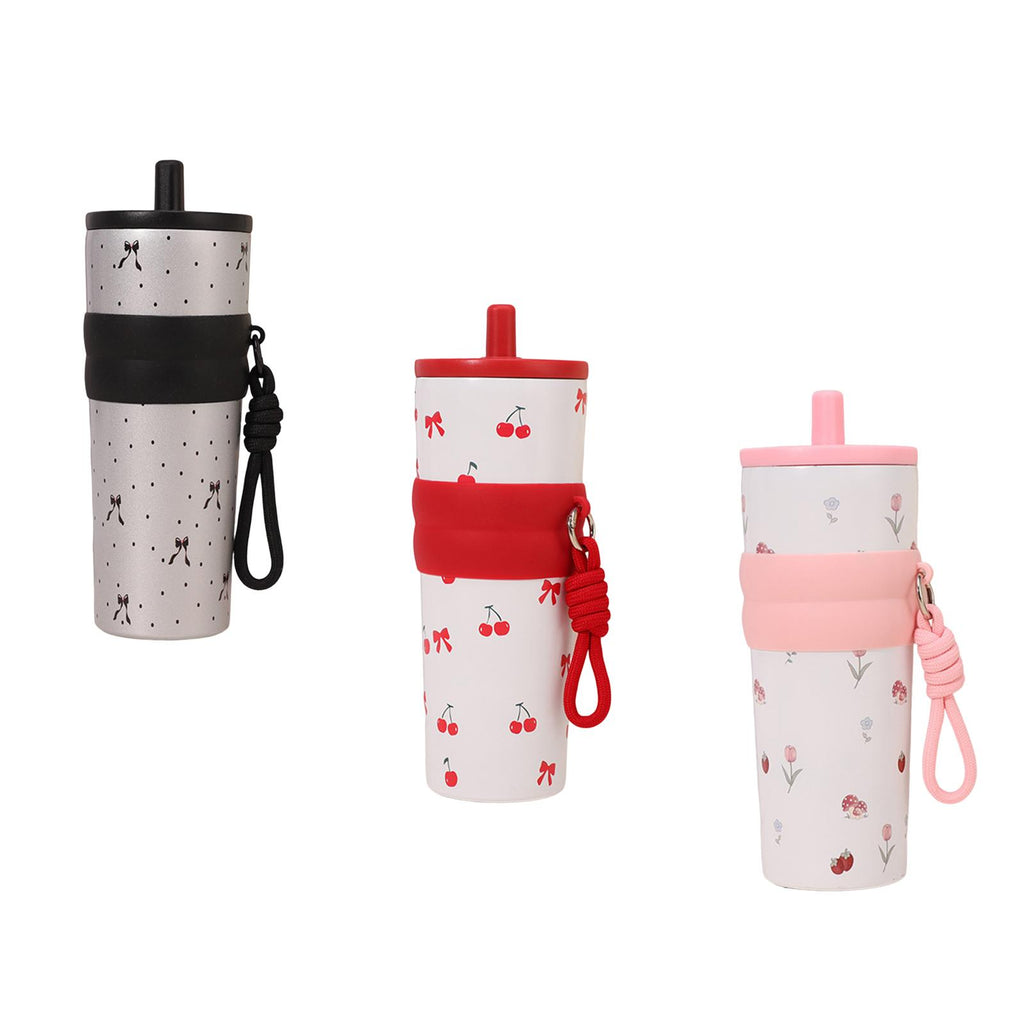 【Large Capacity】: This adorable and stylish water bottle has a capacity of 710ml, carry rope design, suitable for outdoor activities and trip