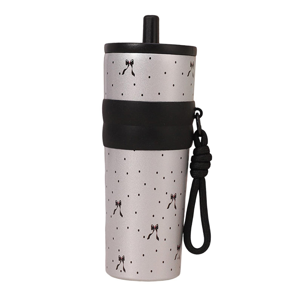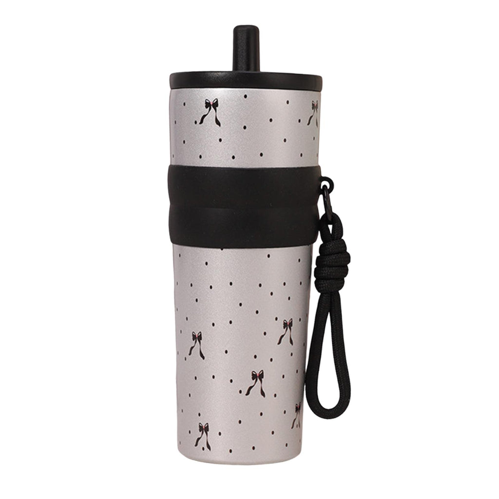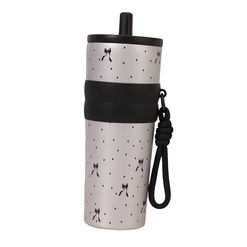 Maxbell Insulated Bottle Thermal Cup Cute Drinking Bottle for Travel Office Sports Silver and Black