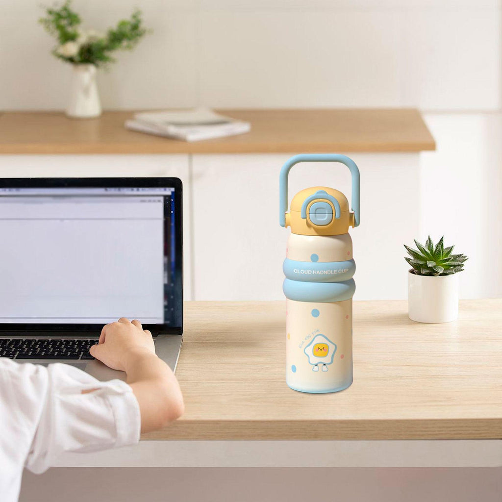 Maxbell Insulated Water Bottle with Handle Cartoon Tumbler for Work Traveling Sports Yellow