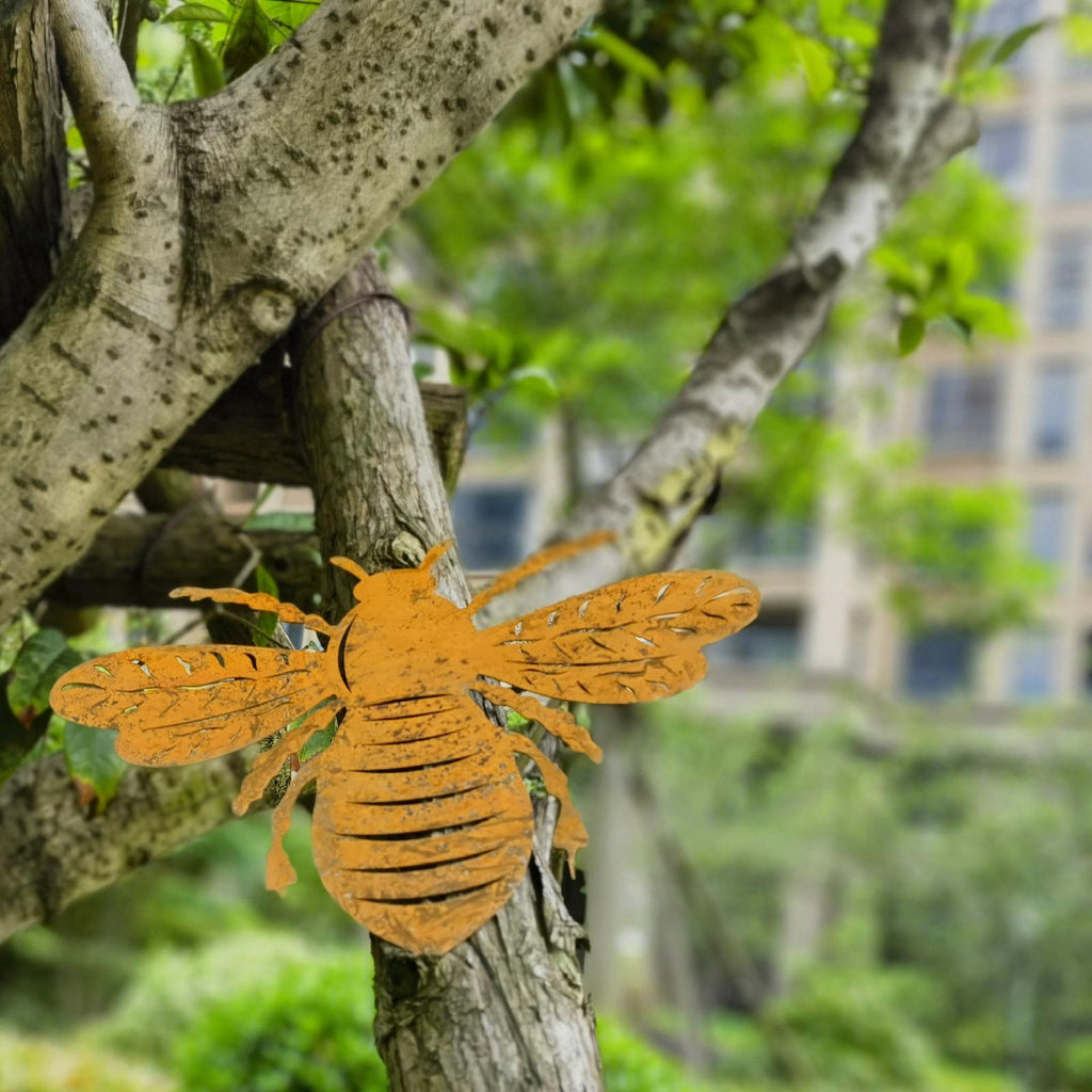 【Garden Ornaments】: Iron bee statue ornament with rust can improve the appearance of the garden, which makes your garden unique and attract the attention of neighbors.