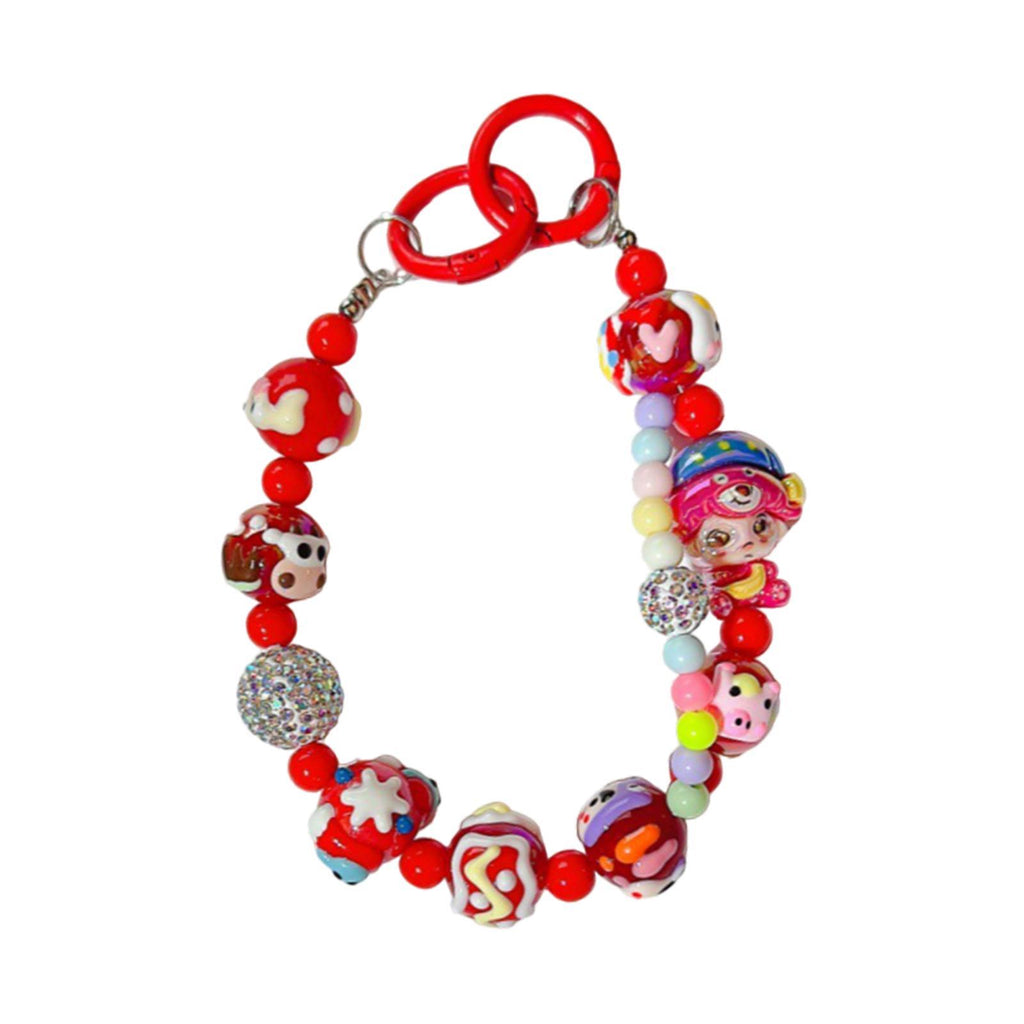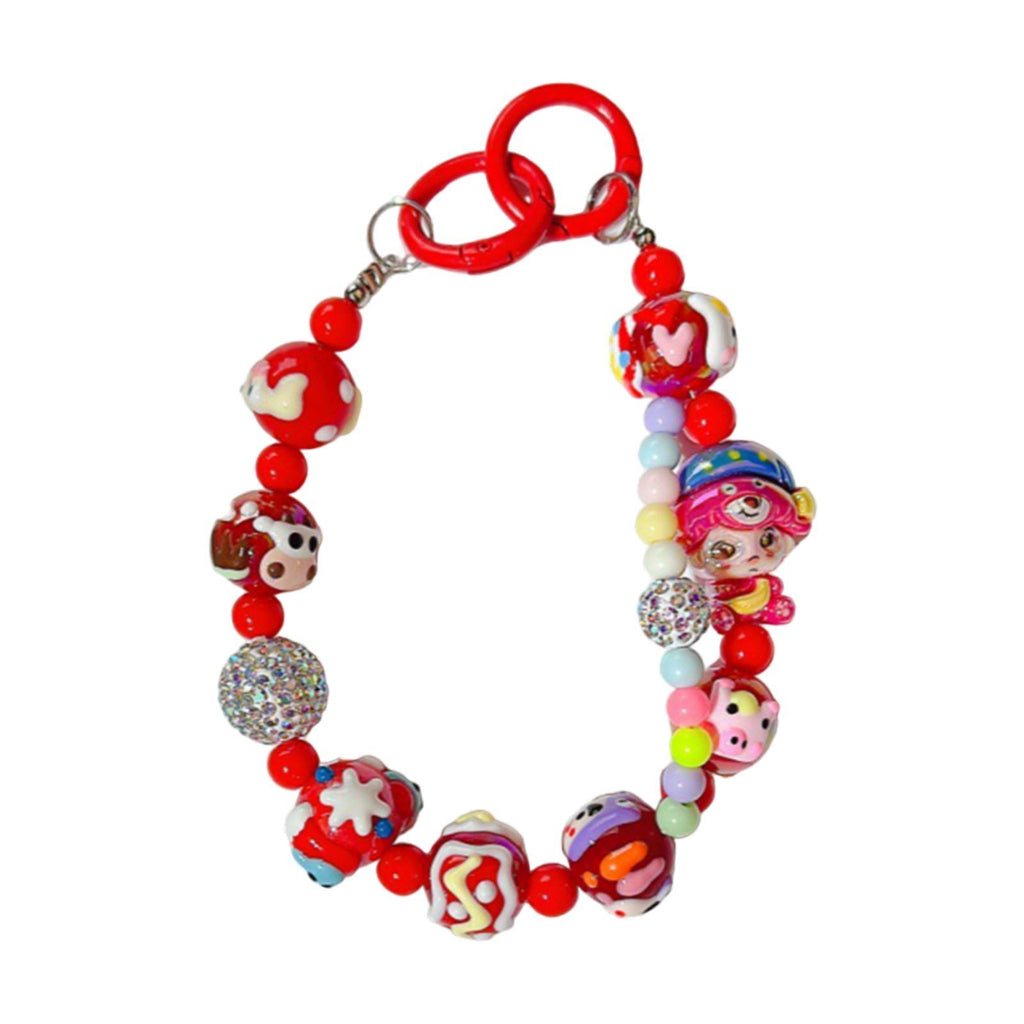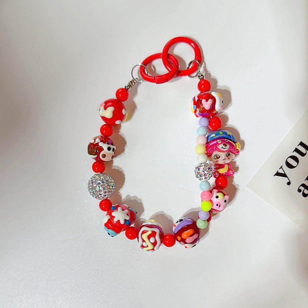 【Cartoon Design】Creative phone charm cute beaded cellphone lanyard keychain bag accessory.
