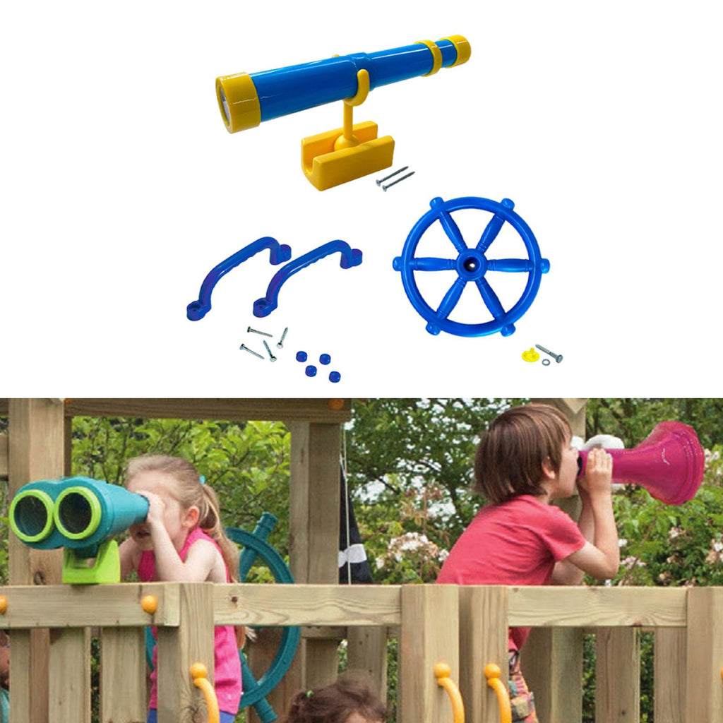 【Material】: Made from pp material with a sturdy design, these playground accessories round corner design can protect your children from scratches while playing, the telescope base bracket can be adjusted 180°, and the telescope can be rotated 360°