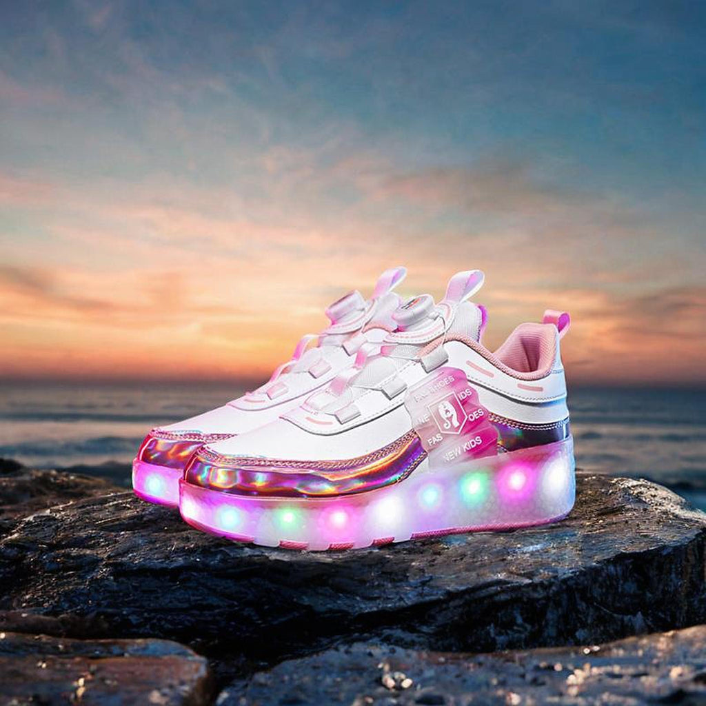 【Retractable Wheels with Lights】: The wheels can be easily retractable, and the built in lights are rechargeable, adding fun and functionality to every step