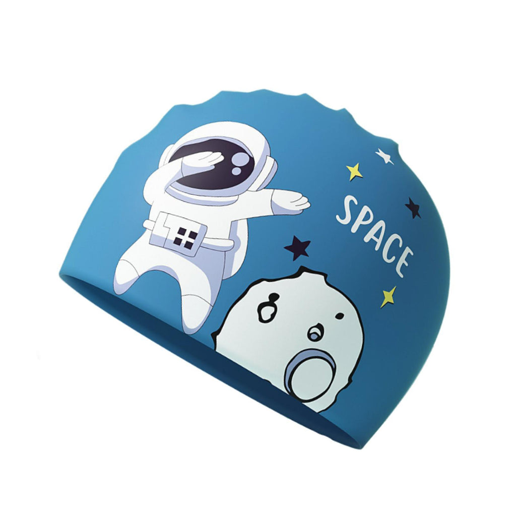 Maxbell Kids Swim Cap Cartoon Soft Silicone Shower Cap for Water Sports Beach Diving Blue