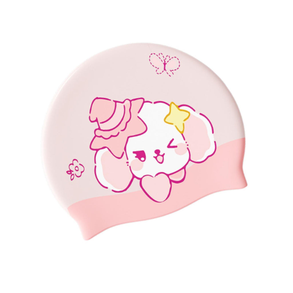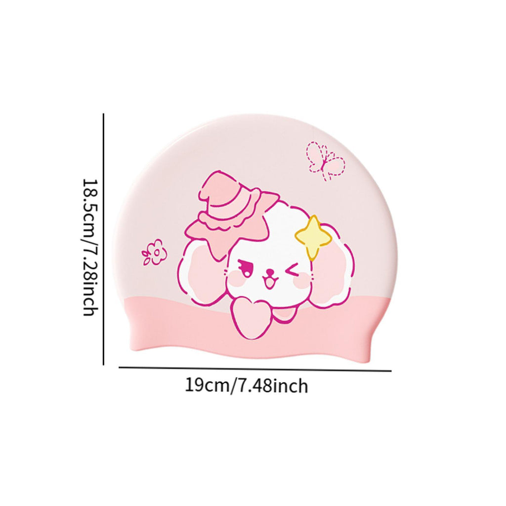 Maxbell Kids Swim Cap Cartoon Soft Silicone Shower Cap for Water Sports Beach Diving Pink