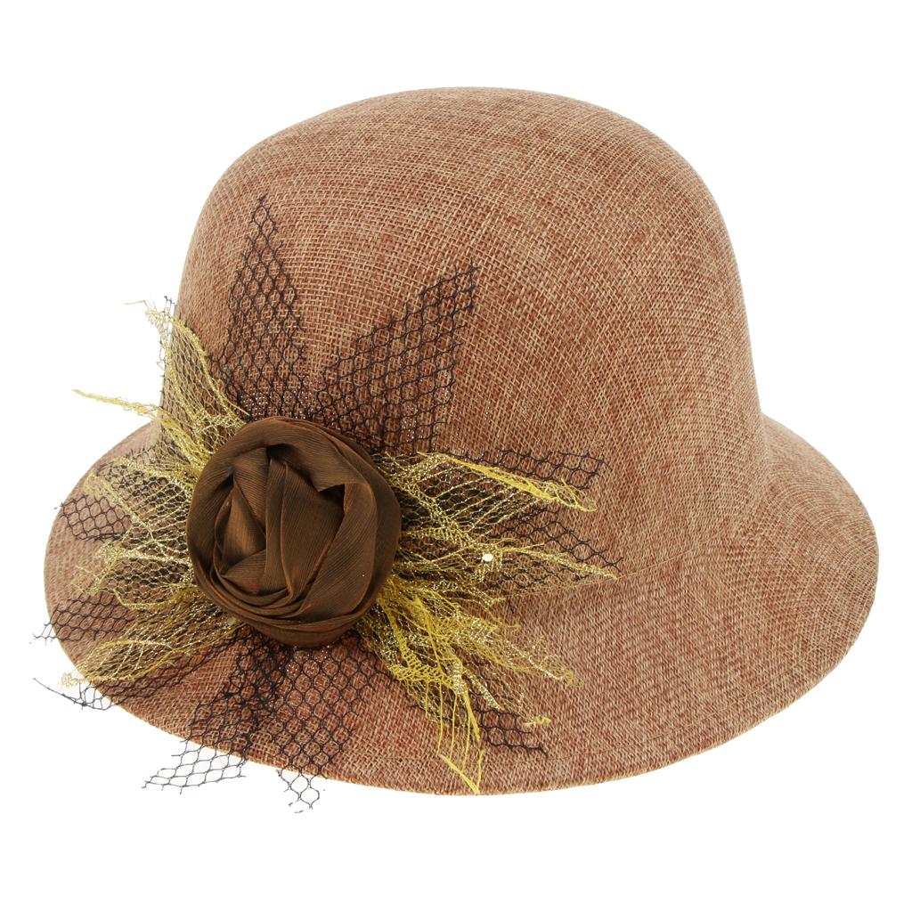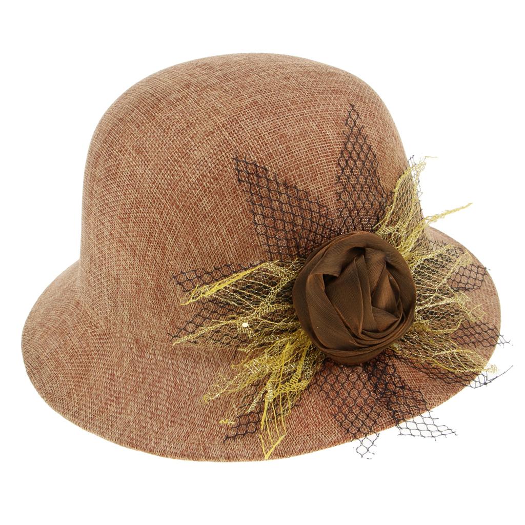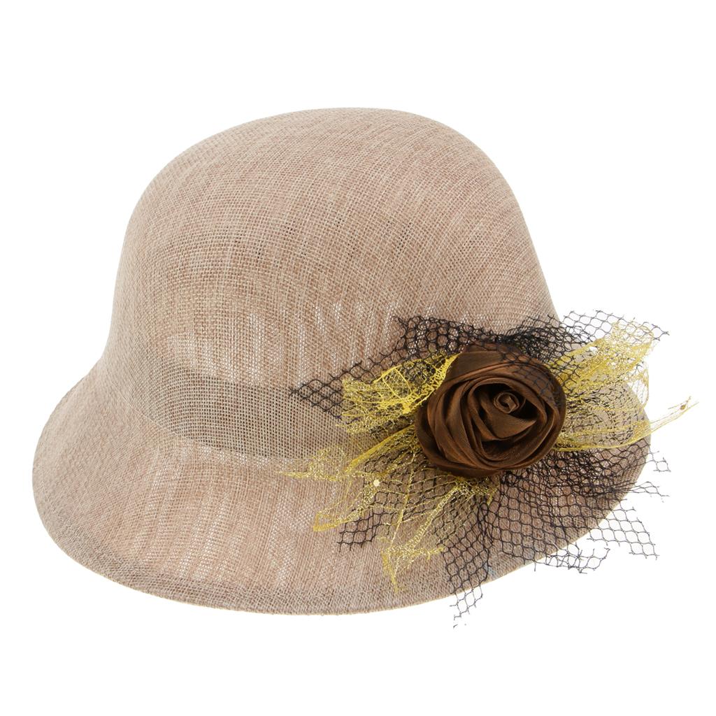 Maxbell Ladies Flax Fashion Straw Beach Fisherman Sunhat Outdoors Topee Khaki+Beige