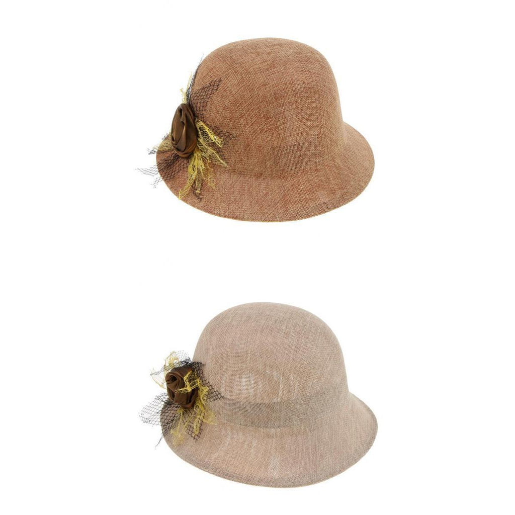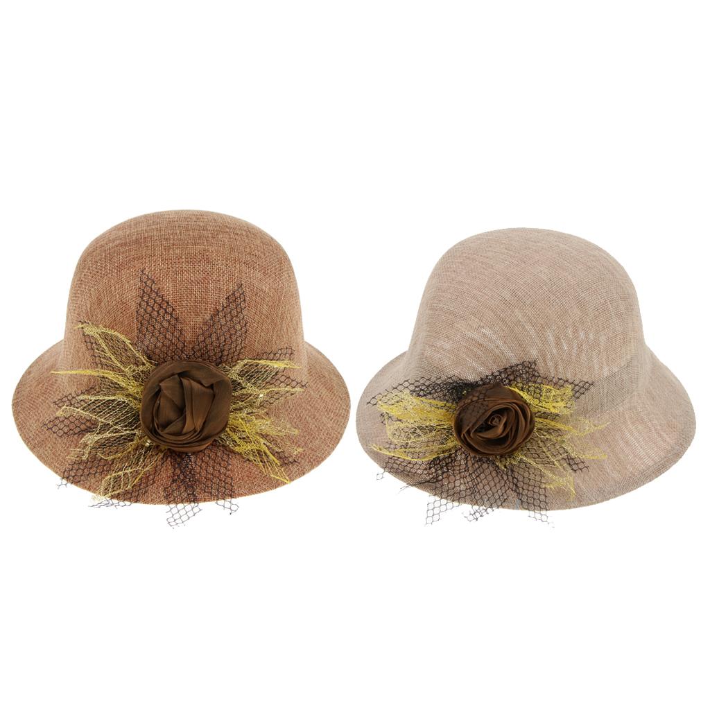 2 Pieces Ladies flax fashion straw summer beach fisherman sunhat flower bowler hat.