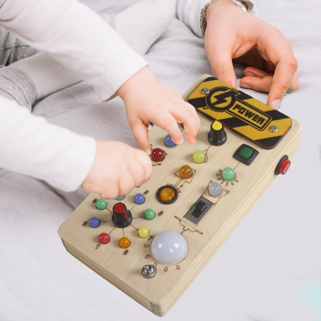 【Busy Board】Montessori busy board with led light to control different colors of lights, very interesting.