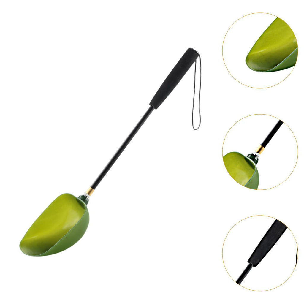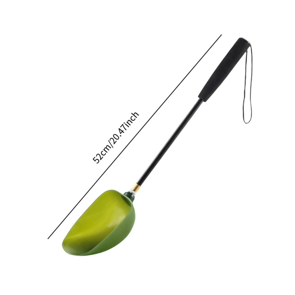 【Premium Materials】: Crafted from quality pp and metal, this baiting scoop features an ergonomic handle for a comfortable grip