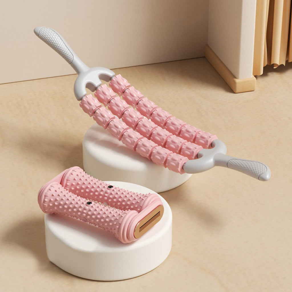 Maxbell Massage Roller Stick Gym Handheld Shoulders Thighs Sports Body Muscle Roller Pink