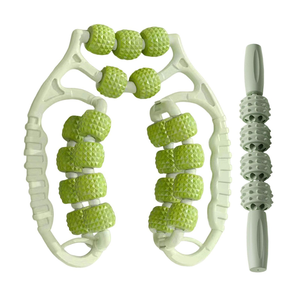 Maxbell Massage Rollers 21 and 4 Wheels Manual Leg Massagers for Travel Outdoor Arms Green