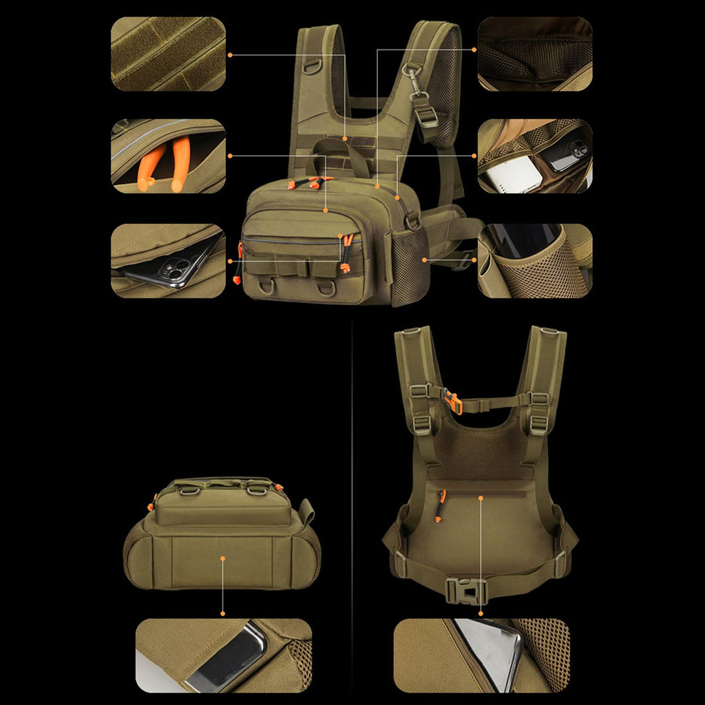 【Quality material】: Crafted from quality oxford cloth, this utility chest pack is breathable, comfortable, sturdy, and wear resistant, ensuring long time use