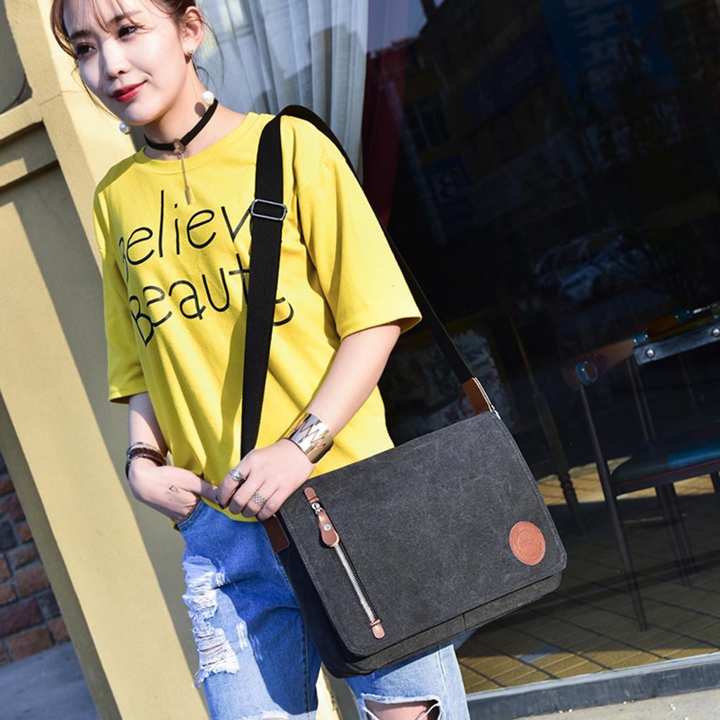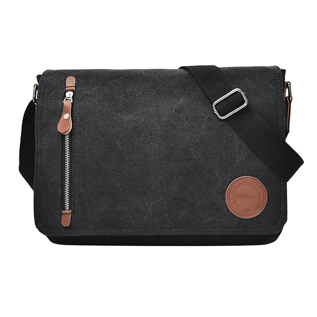 Maxbell Men Women Canvas Travel Hiking Satchel School Shoulder Messenger Bag Black