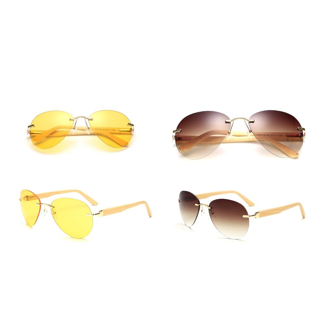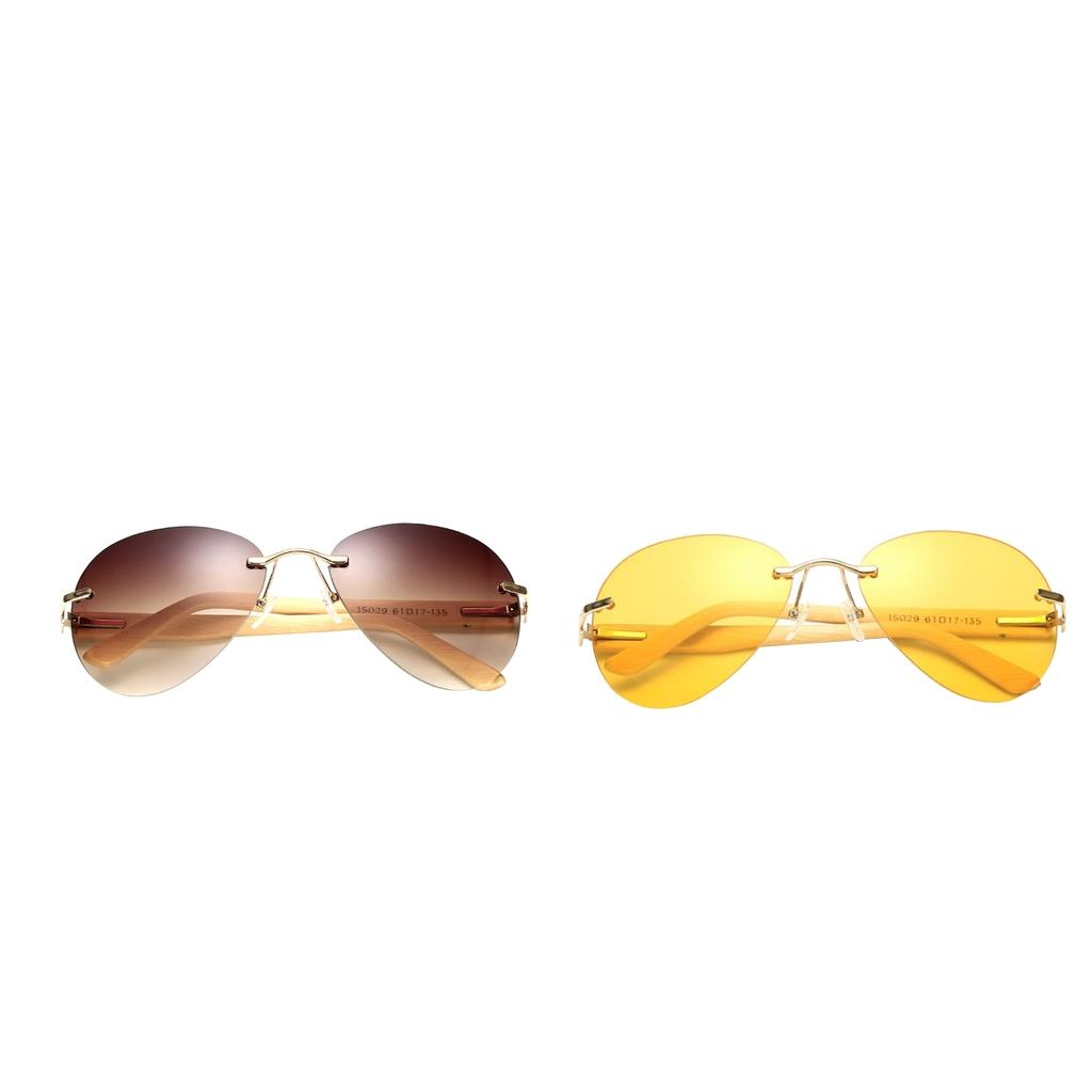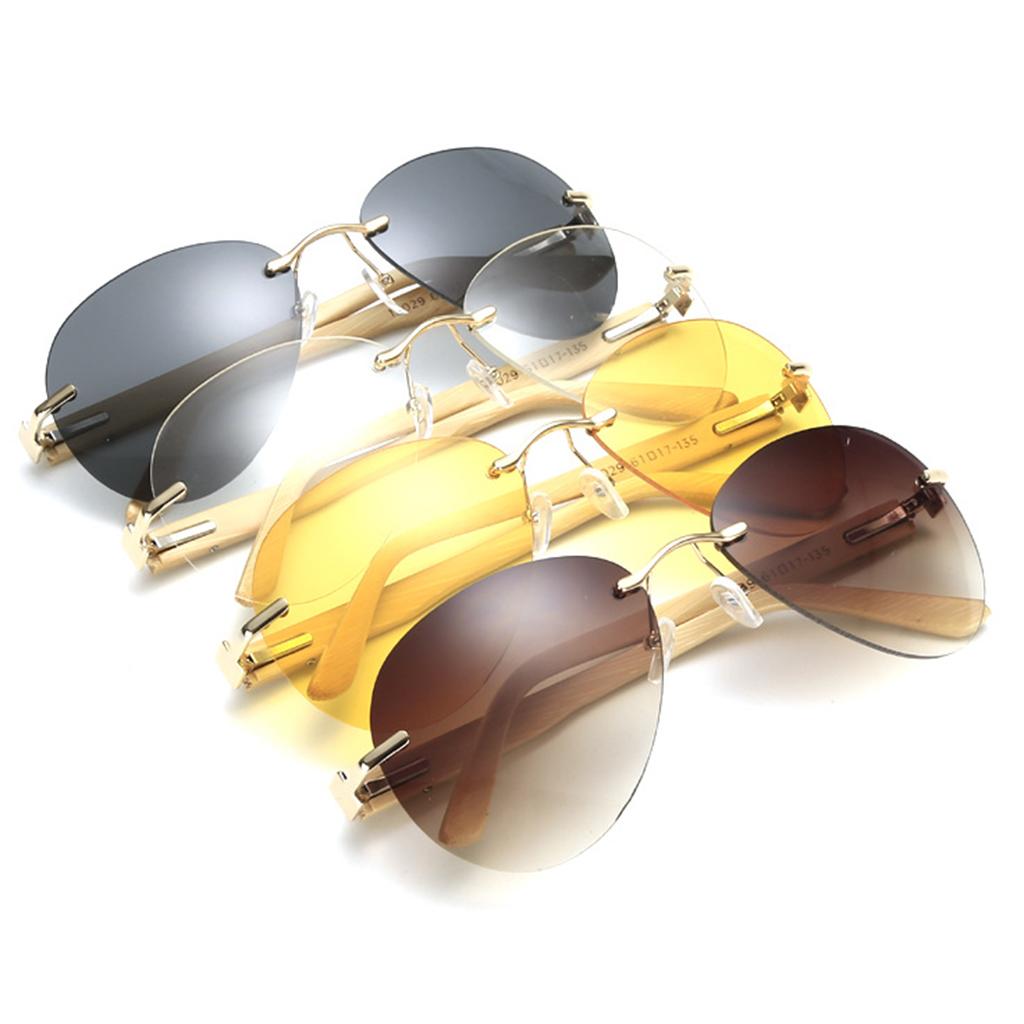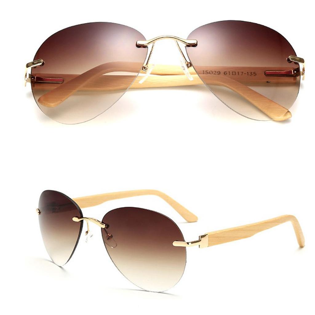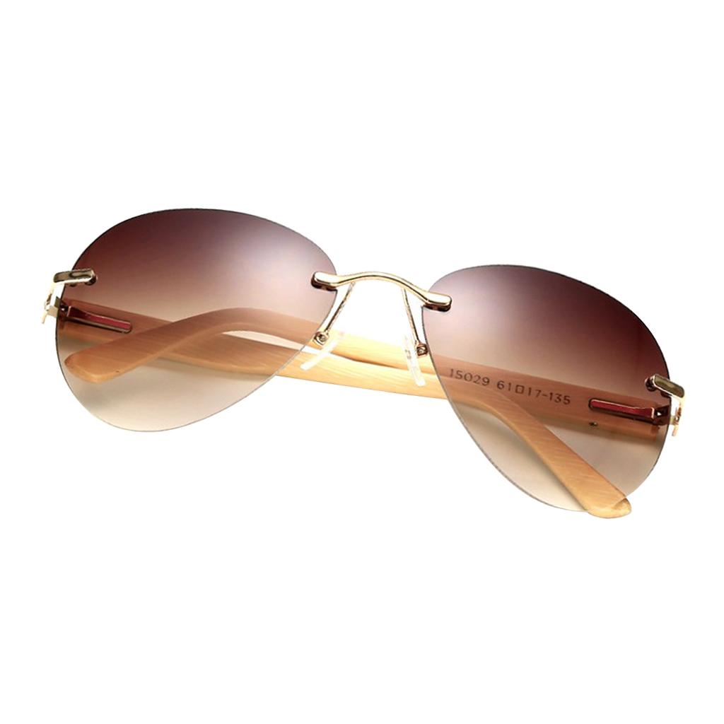 Maxbell Maxbell Men Women Fashion Classic Wood Bamboo Rimless Sunglasses for Outdoor Tawny