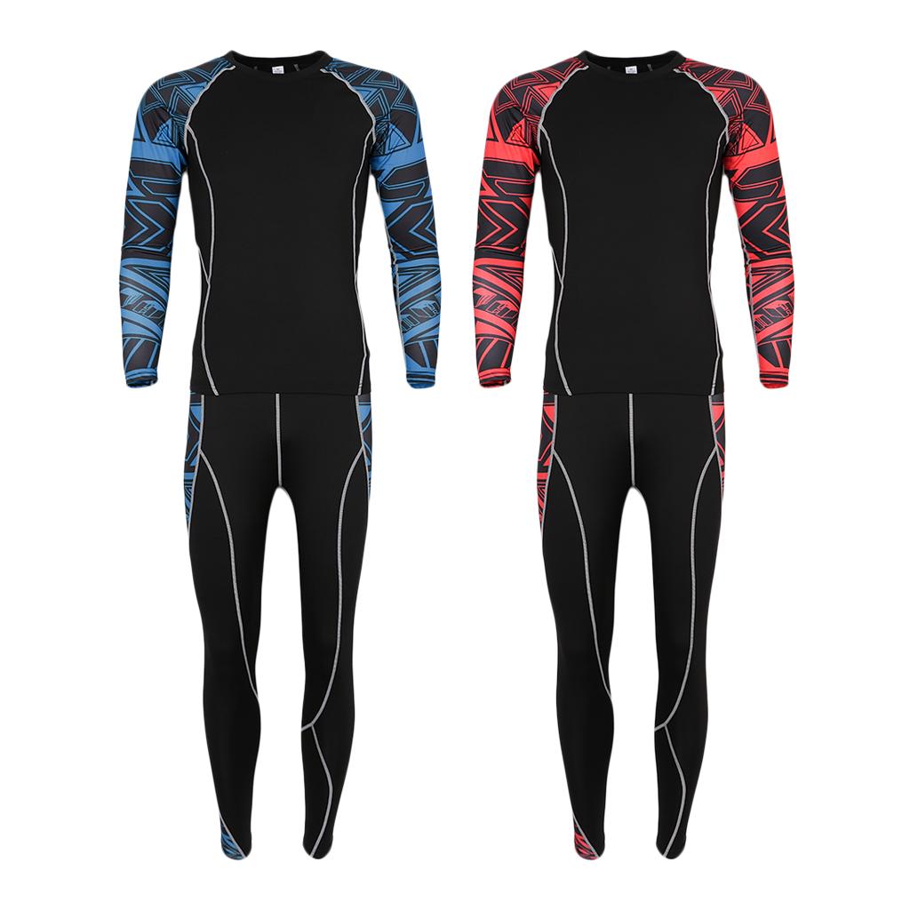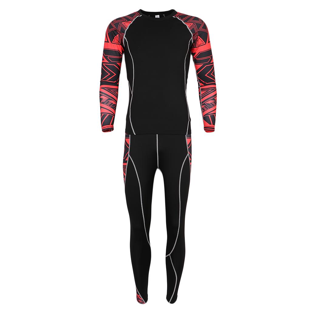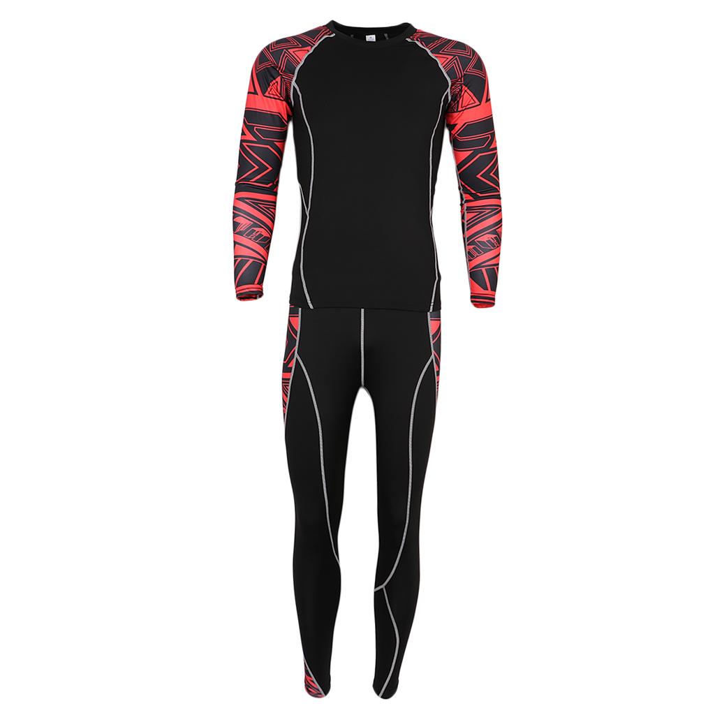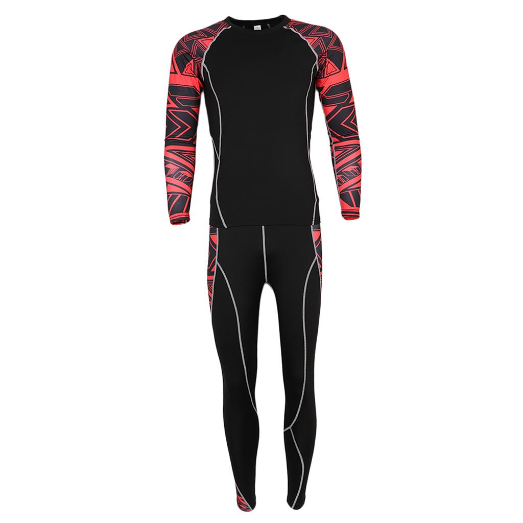 Maxbell Men's Long Sleeve Compression Sports Top T-Shirts and Pants M Black Red