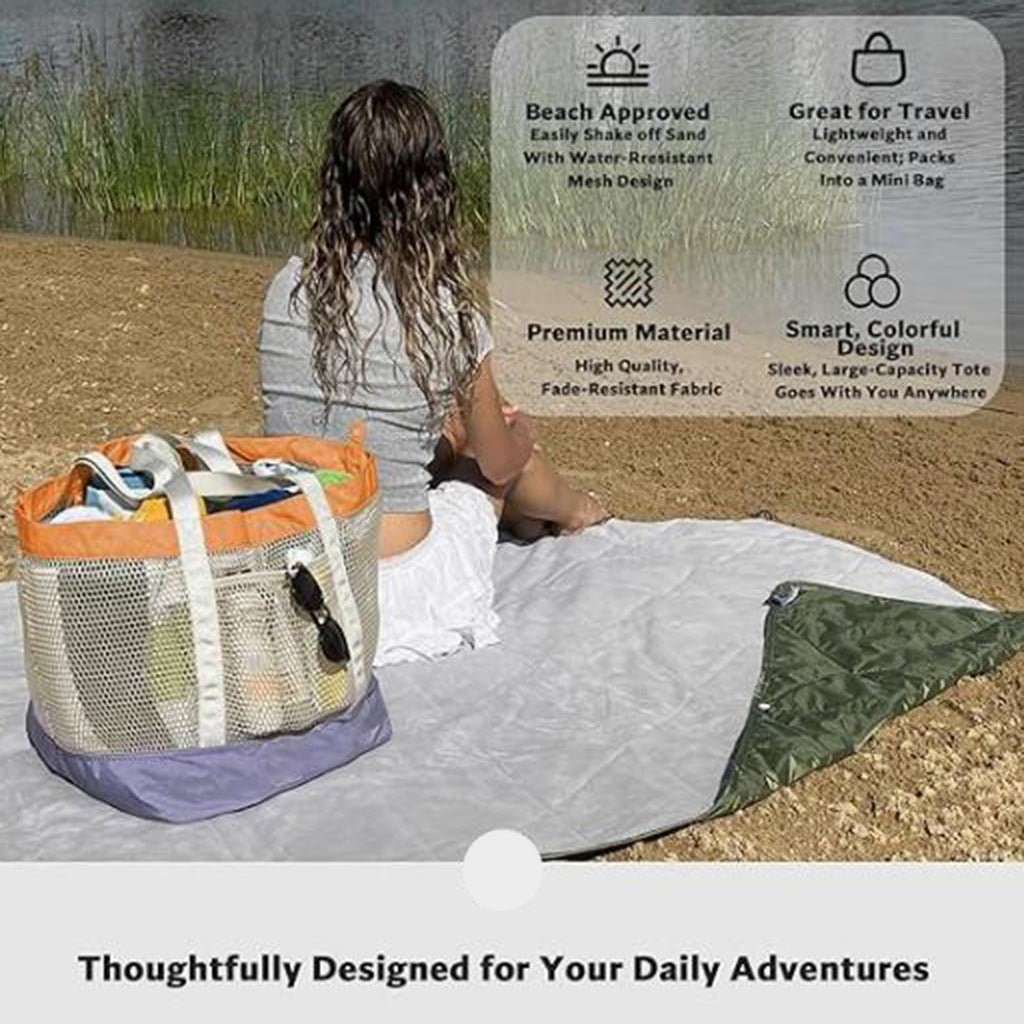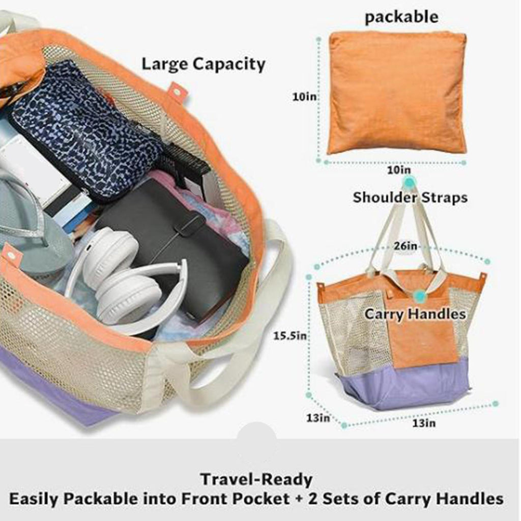 【Premium Material】: This Mesh Beach Bag is made from lightweight yet sturdy nylon and polyester materials that are breathable and wear resistant, ensuring durability and long time use