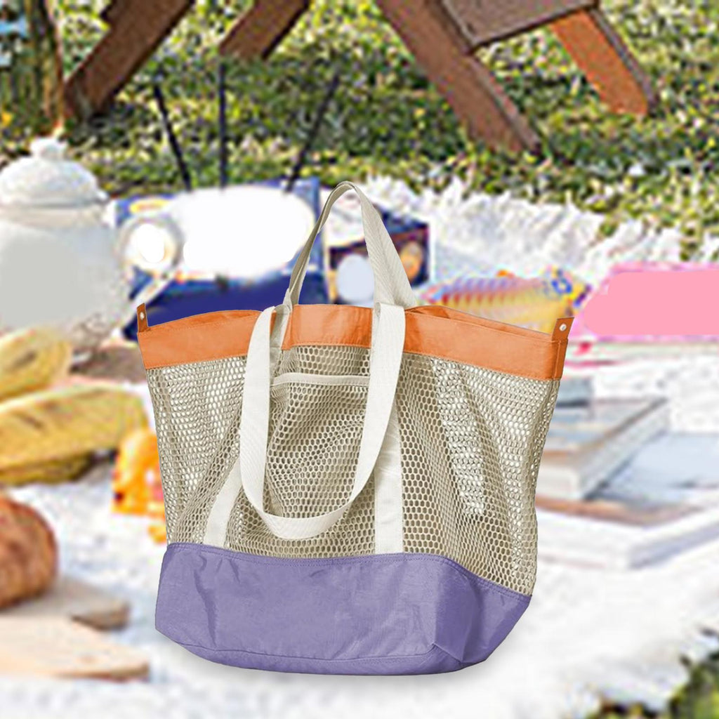 Maxbell Mesh Beach Bag Casual for Women Shoulder Bag for Vacation Essentials Outdoor Purple
