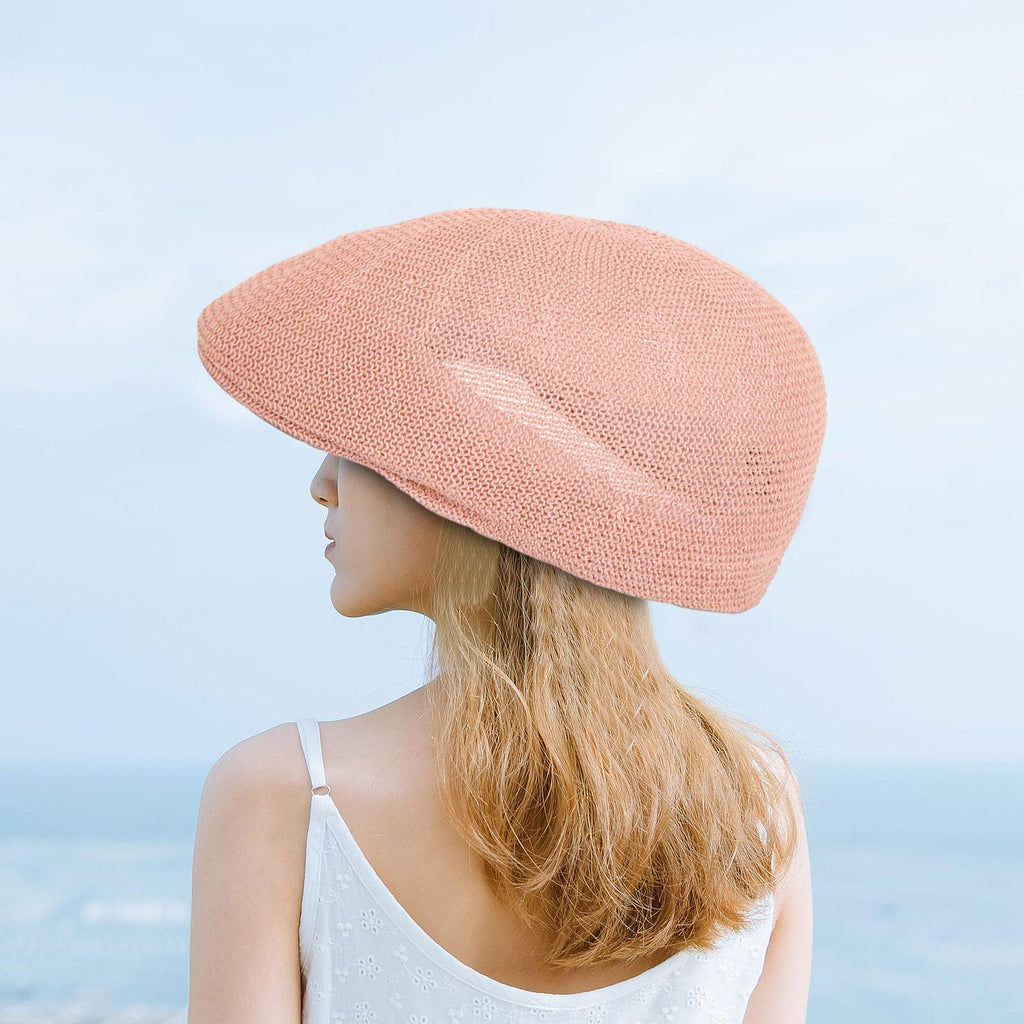 Maxbell Mesh Flat Cap Painter Hat Adults Headwear Summer Hat for Outdoor Travel Light Pink