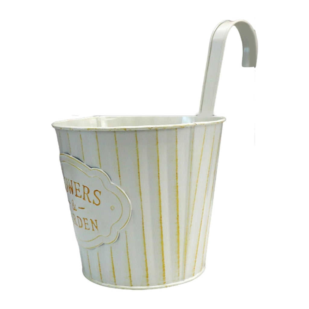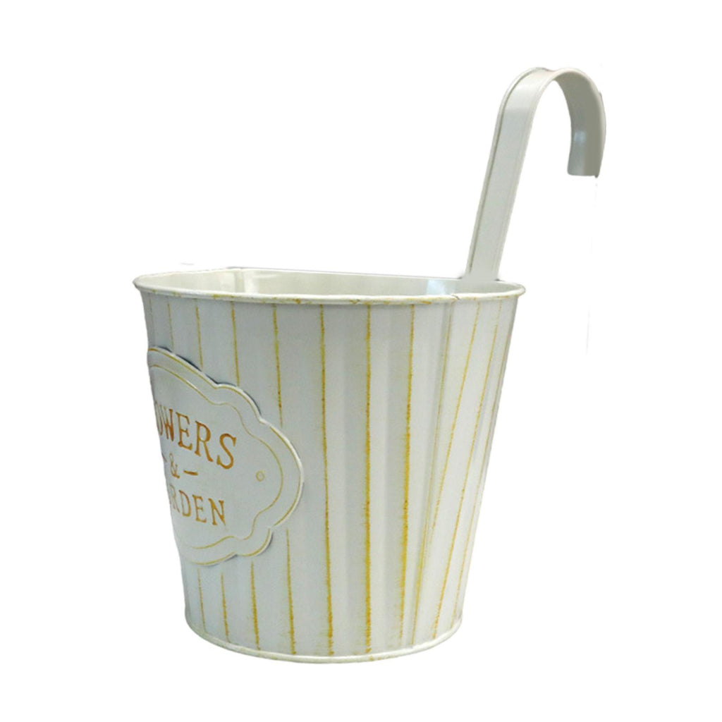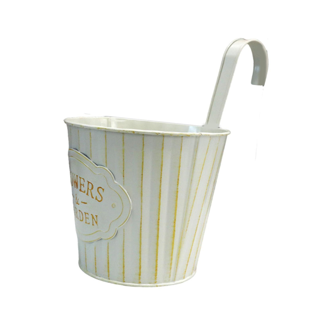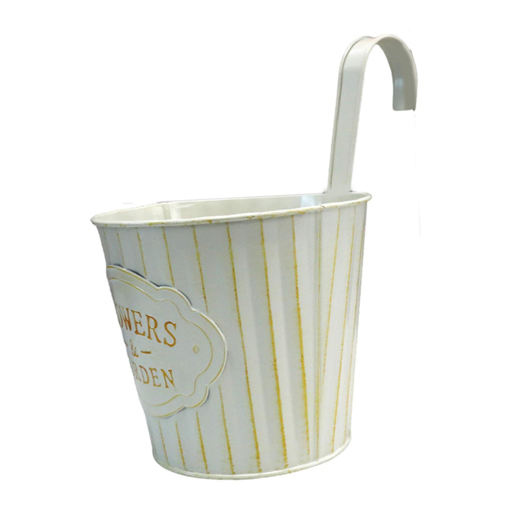 Maxbell Metal Hanging Flower Pot Garden Decoration Outdoor Railing Fence Hanging Pot Large White