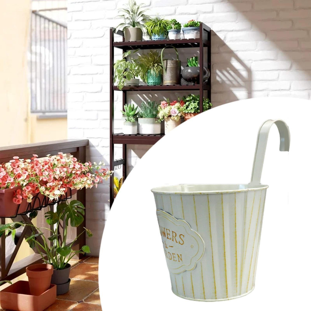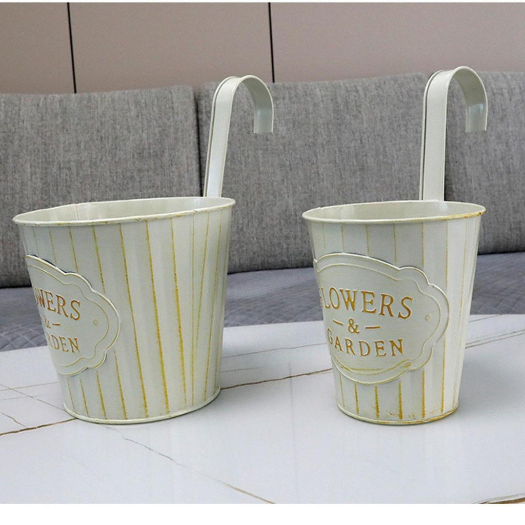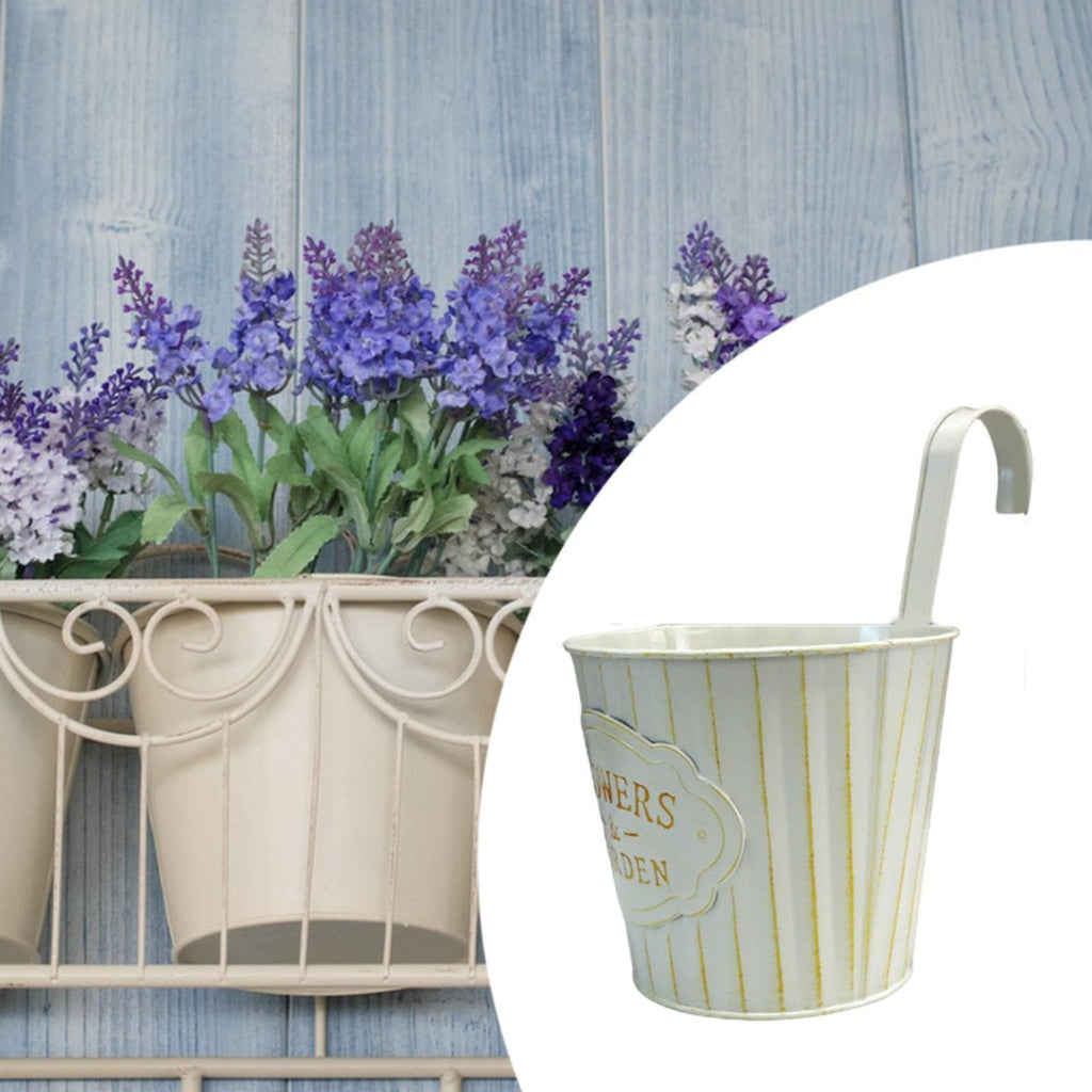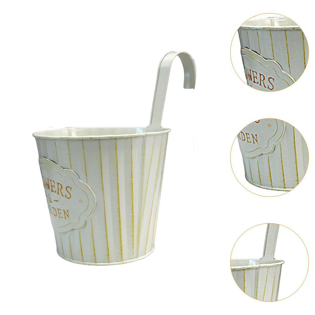 Maxbell Metal Hanging Flower Pot Garden Decoration Outdoor Railing Fence Hanging Pot Large White