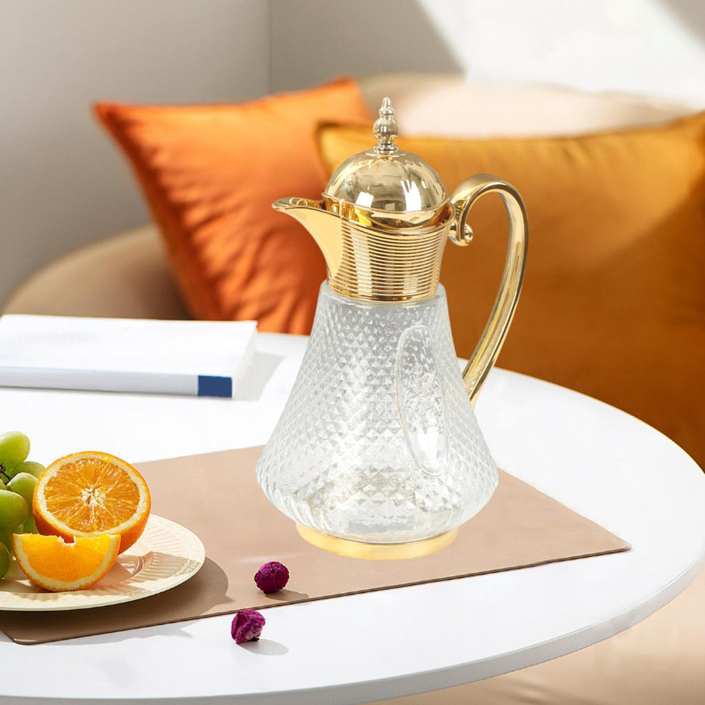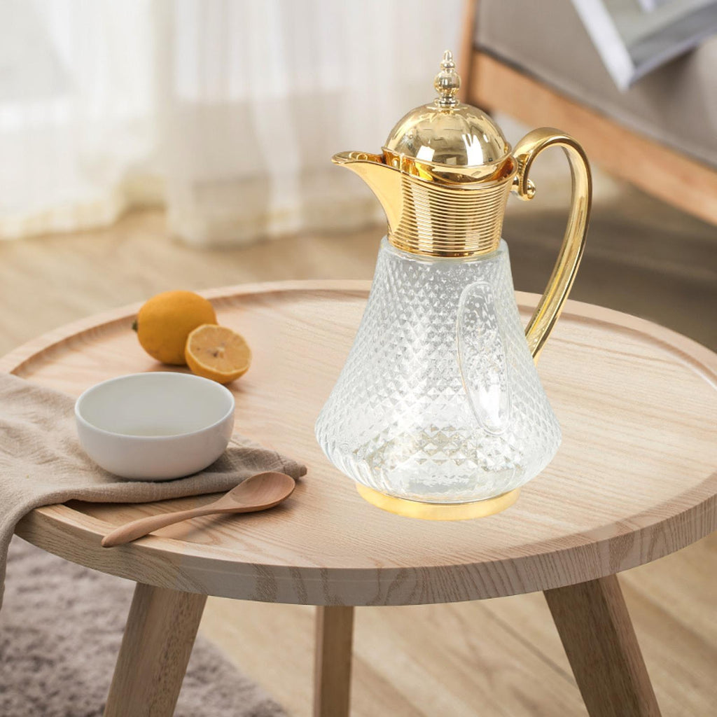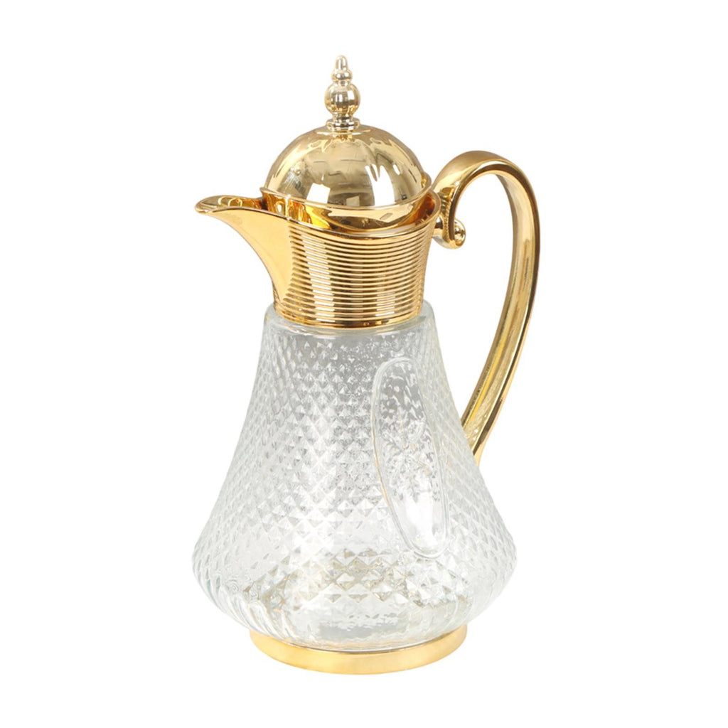 Maxbell Middle Eastern Style Glass Pitcher Glass Water Jug for Office Indoor Outdoor Gold