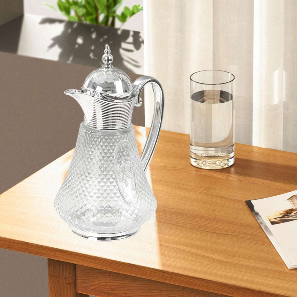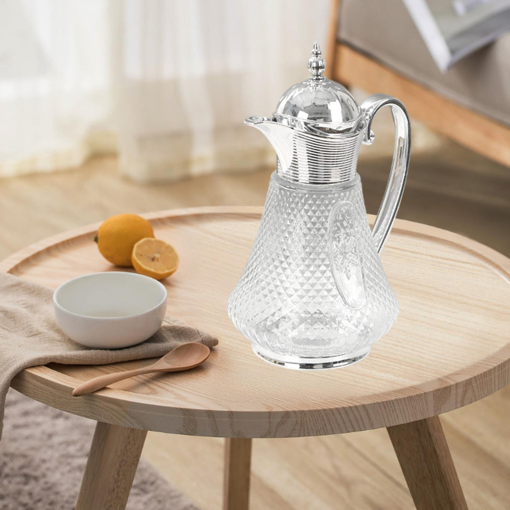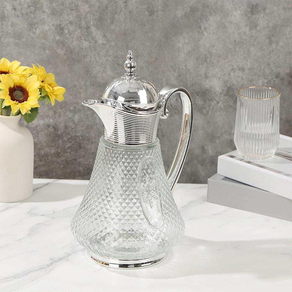 Maxbell Middle Eastern Style Glass Pitcher Glass Water Jug for Office Indoor Outdoor Silver