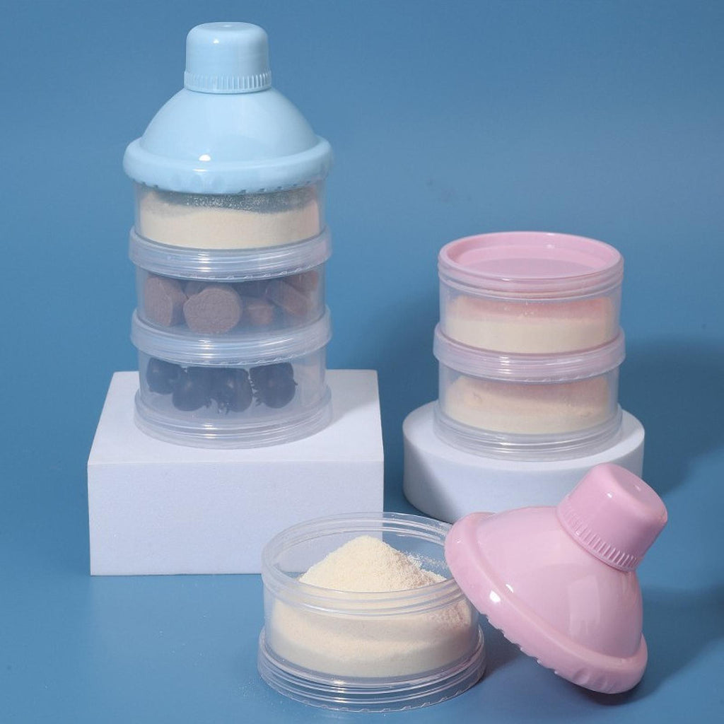【4 Layer Mike Powder Container】: Powder dispenser with 4 layer compartments and you can easily clean this milk powder box, and with funnel lid, easy to pour milk powder