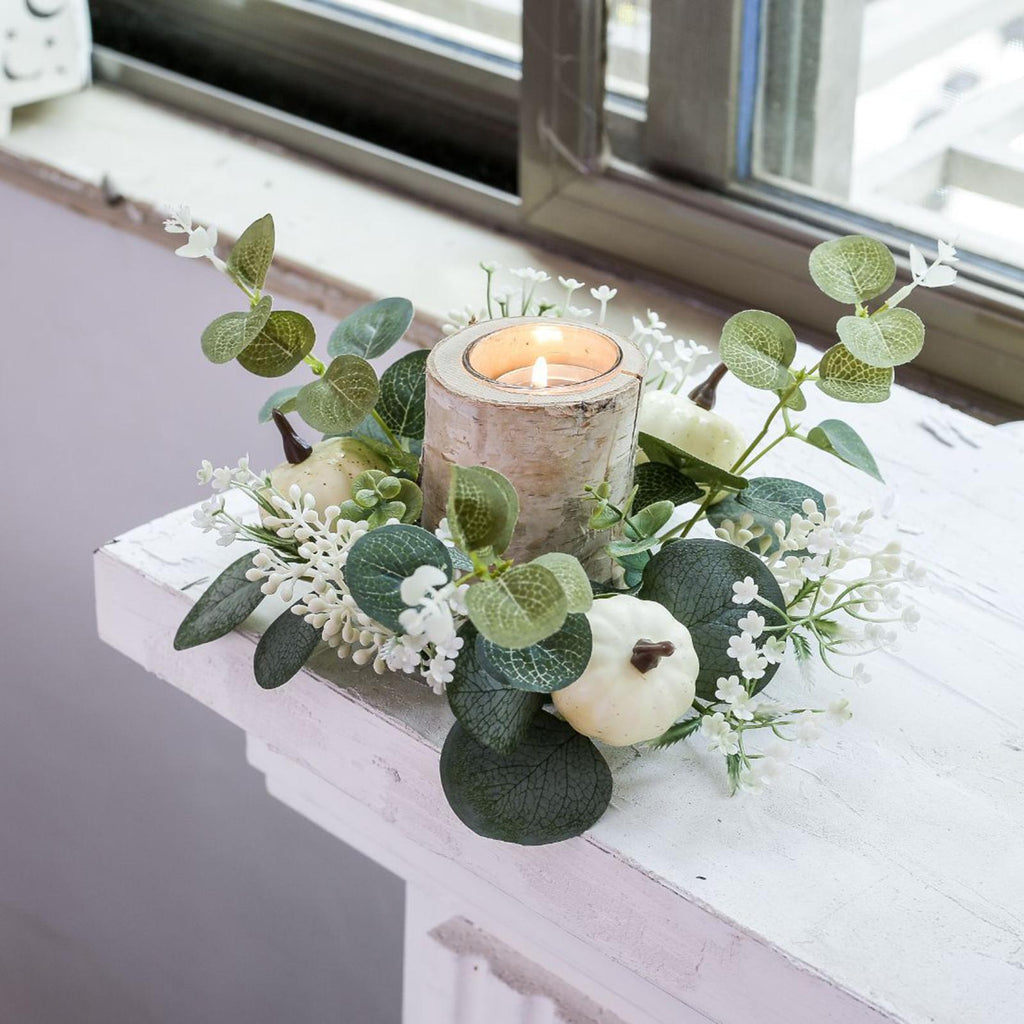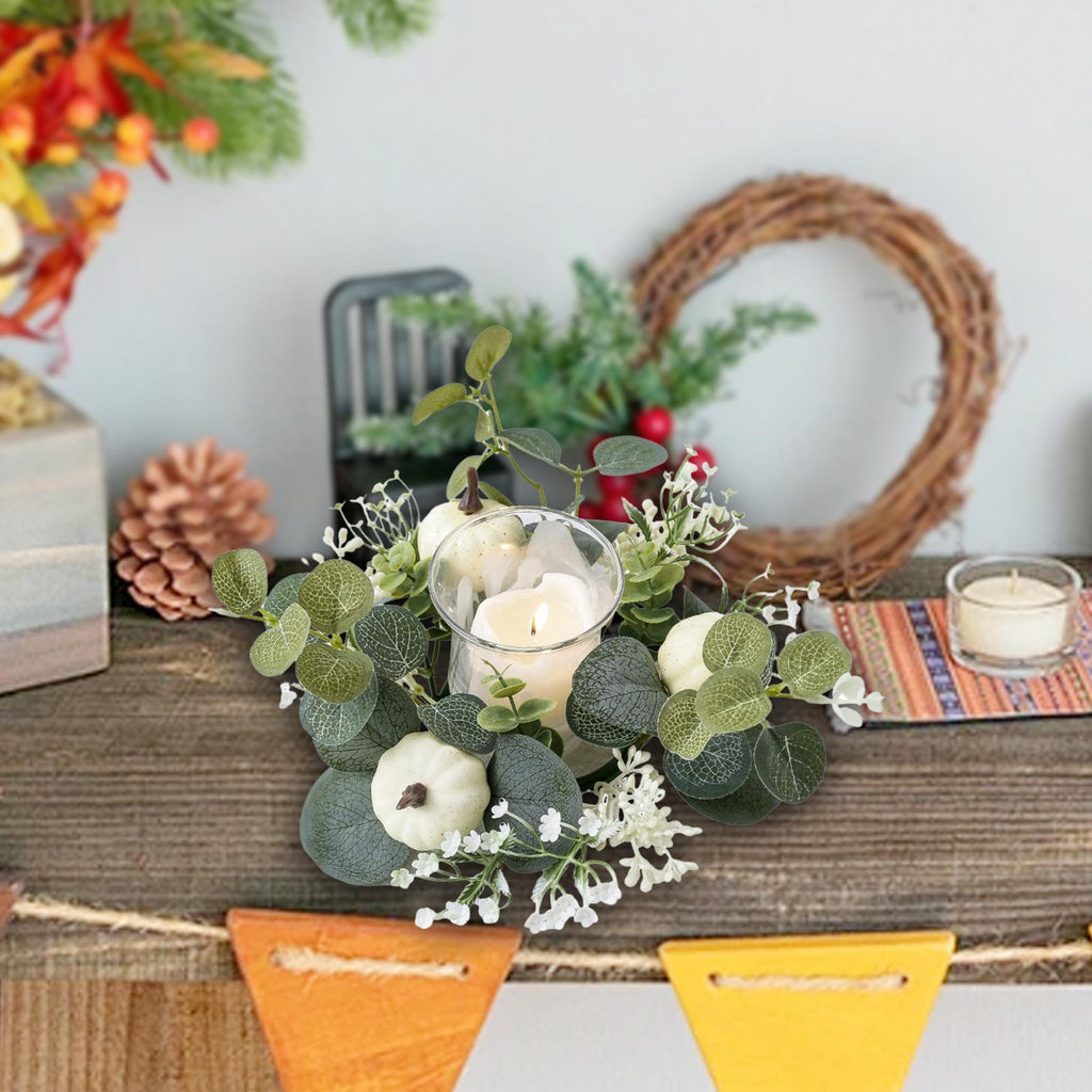 Maxbell Mini Pumpkin Candle Wreath Harvest Wreath for Fireplace Party Indoor Outdoor