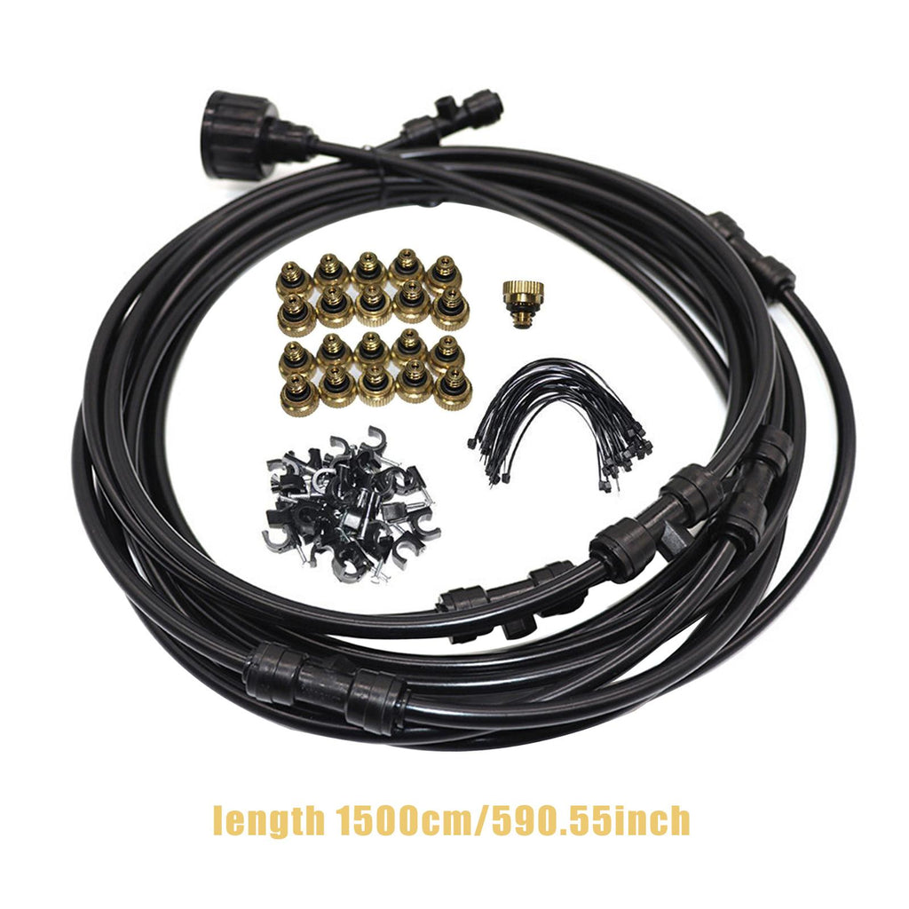 【High Performace】: The misting cooling system features 21 mist nozzles, length is approx. 15 m/49.21 feet, has a good sealing, no leaking, produces fine and smooth spray, and has a long service life