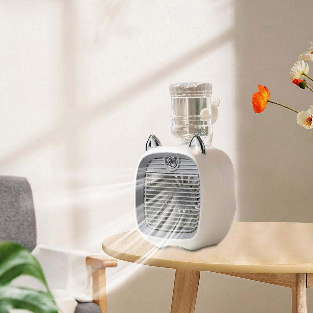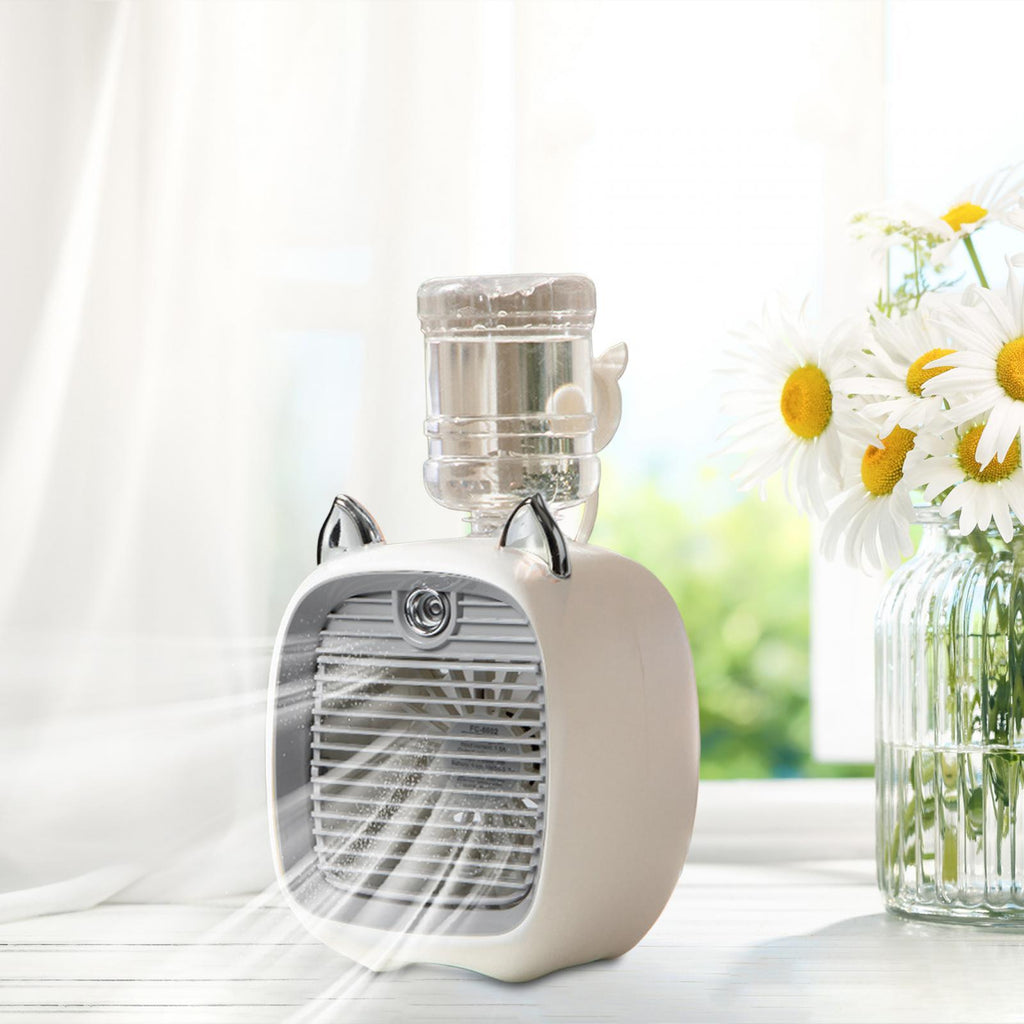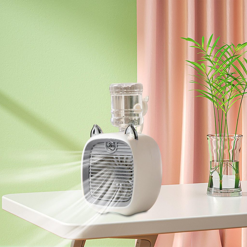 - 【Portable Cooling Fan】: This mini can be used as a normal fan or a water fan. Ice cubes and water can be put into the water tank to increase the relative humidity and improve the cooling effect at the same time.