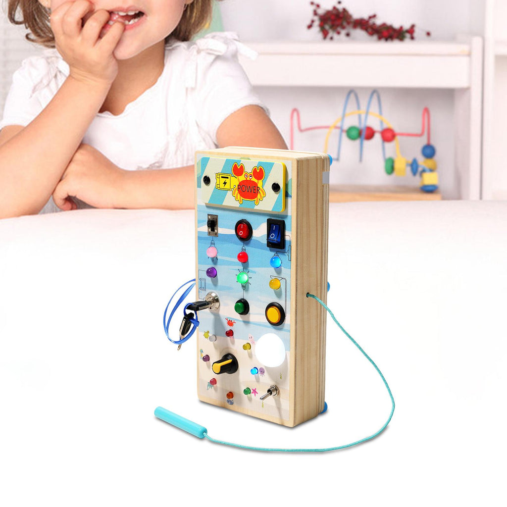 Maxbell Montessori LED Busy Board Wooden Sensory Board for Toddlers 1-3 Travel Kids