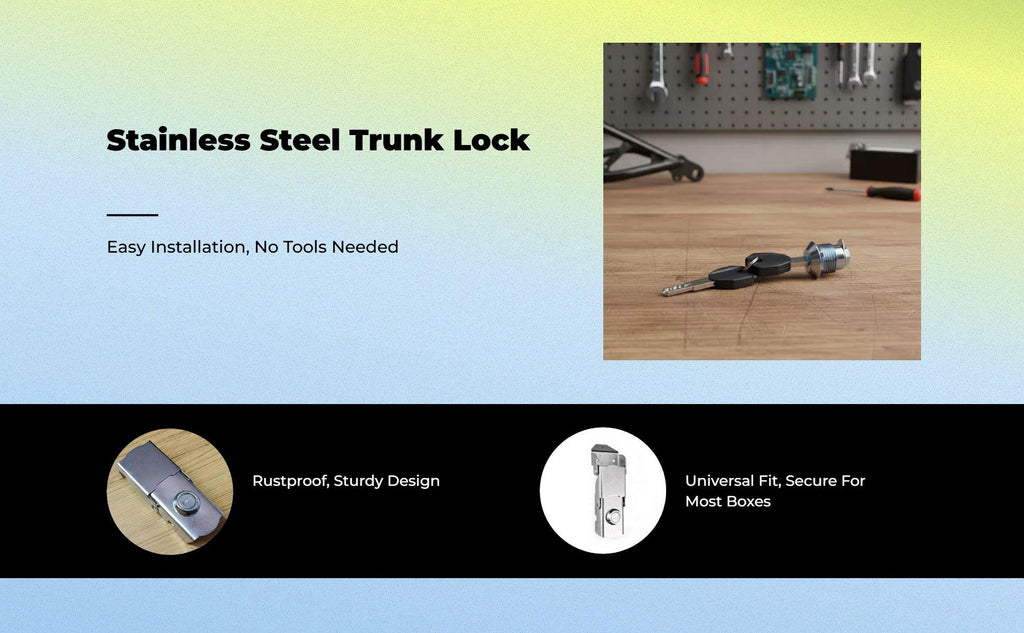 [Secure Motorcycle Trunk Lock for Outdoor Use] This universal tail box lock is designed for motorcycles, scooters, and electric bikes, providing dependable security for your storage trunk whether you're traveling, commuting, or enjoying weekend adventures. [Sturdy and Weatherproof Construction] Made from robust materials, this lock is both waterproof and rust-resistant, offering long protection for your belongings in any weather. [Easy Installation and Versatile Fit] Featuring a multifunctional design compatible with most motorcycles and tail boxes, this lock ensures quick and hassle installation. [Practical and Cost-Effective Solution] With outstanding practicality, this trunk lock delivers great value when securing your storage box or rear trunk. [Complete Lock and Key Set] Each package includes a lock along with matching accessories, providing a direct replacement or enhancement for your existing tail box lock.Specification: